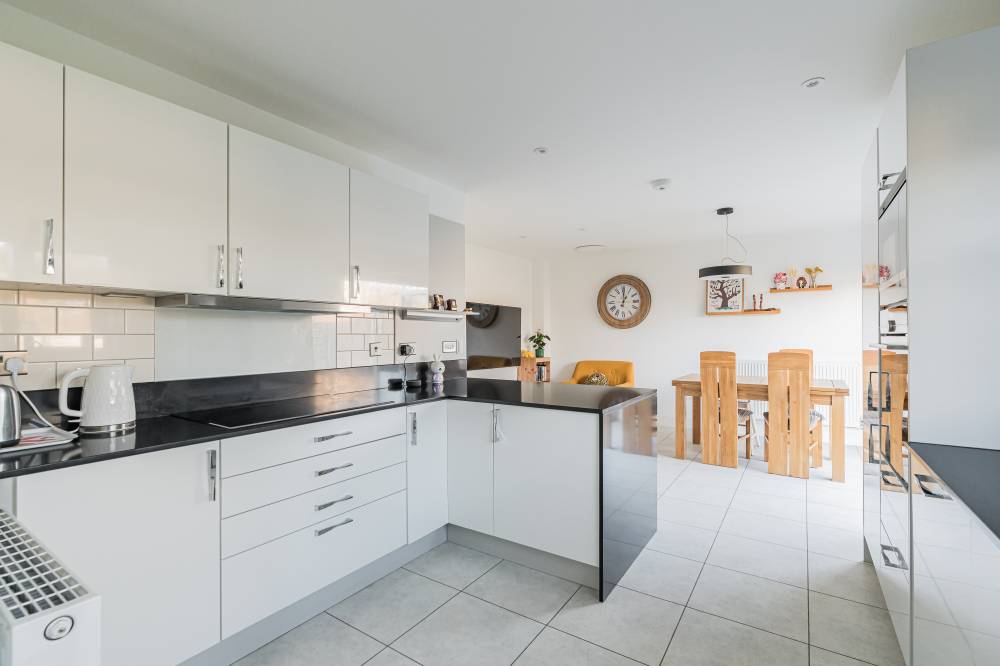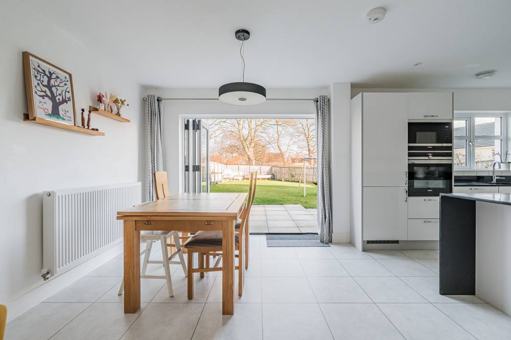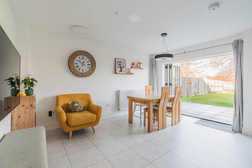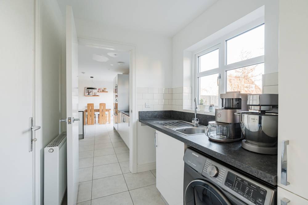 In true move in condition, you enter a welcoming hallway with a walk in cupboard, understairs storage and handy WC, and to your left is the bright and airy lounge. To the rear is the fantastic dining kitchen with a range of sleek white wall and base units with silestone workstops, subway style splashback tiling, a range of integrated appliances, and bi-fold doors to the rear garden. Completing the accommodation on this level is a useful utility room with doors to the side and garage.