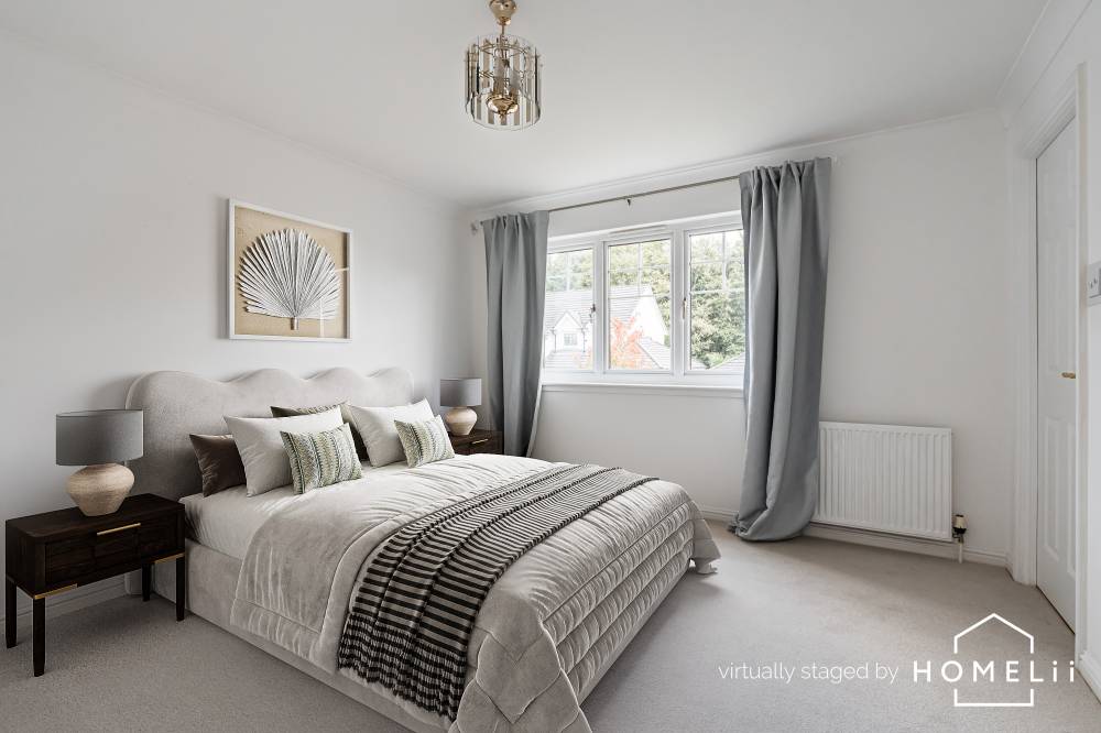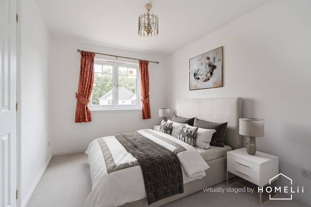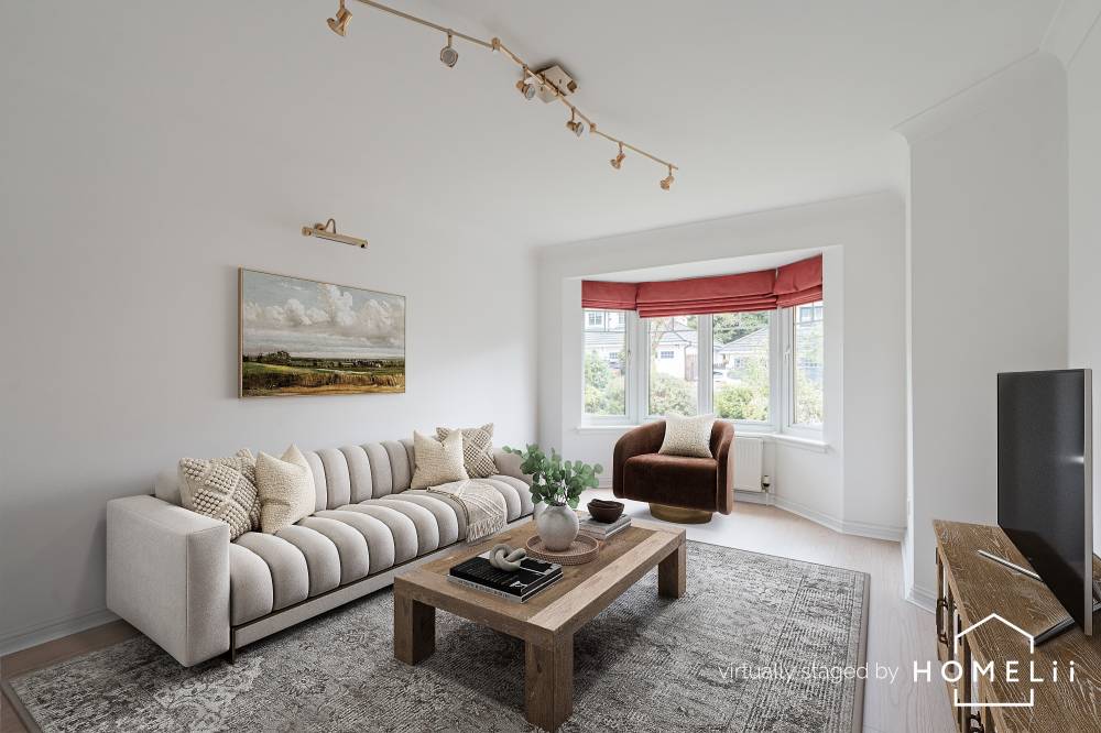 Some of the images have been virtually staged to illustrate potential furnishing options and provide a sense of scale. The property is currently unfurnished, and original photographs of the empty rooms are also included for reference.
