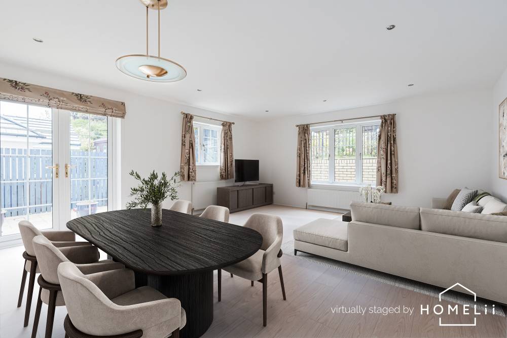Offered to the market in excellent condition, having recently been redecorated with a stylish and neutral tone together with new flooring throughout, the elegant accommodation comprises; welcoming hallway with practical two piece WC apartment and understair storage cupboard. A lovely and bright reception room with bay window is located to the front of the property with a well appointed rear facing breakfasting kitchen with built-in hob/oven/hood and additional appliances included. A sizeable utility room is located off with further wall and base units. A fantastic addition to this property and the real hub of this wonderful home is the large 19’ familyroom/diningroom which offers a wonderful space with dual aspect and French doors leading to the rear paved patio. Accessible from both the kitchen and utility room. A carpeted staircase leads to the upper floor which houses the four sizeable bedrooms and family bathroom. The principal bedroom benefits from built-in double wardrobes and an en-suite shower room, with double bedrooms 2 and 3 benefiting from further built-in wardrobes. Bedroom 4 would make an ideal home office, fitted with a built-in desk unit with ample storage. Finally the family bathroom comprises of a three piece suite including a Jacuzzi bath, wash hand basin and WC with built-in vanity unit. Further benefits include double glazing and a gas central heating system with upgraded combi boiler (1 year old).