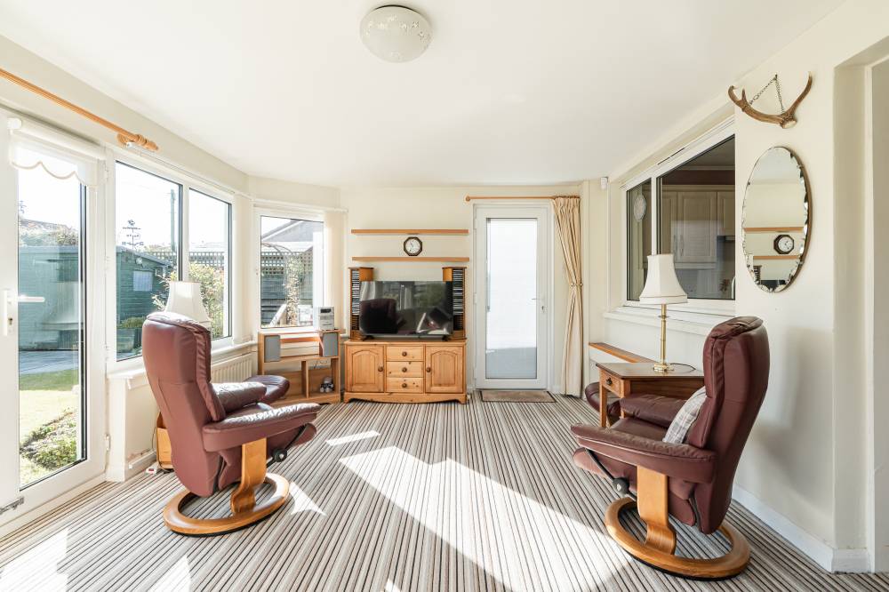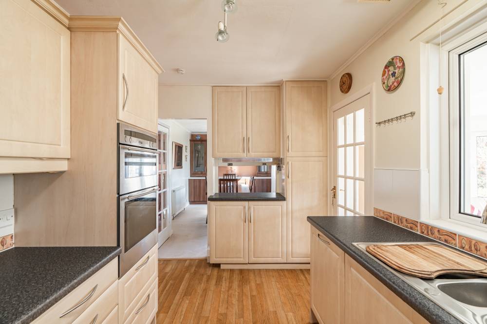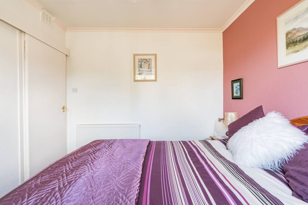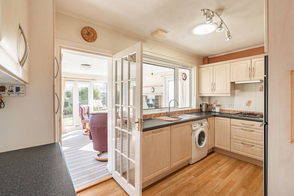 On entering the property, a welcoming hallway with staircase and useful storage sets the tone for the generous accommodation on offer. To the front, a charming reception room with a gas fireplace provides a cosy setting, while the well-planned galley-style kitchen comes complete with fitted units and integrated appliances. A formal dining room, ideal for family meals or entertaining, features glazed sliding doors which open directly to the garden, creating a seamless indoor-outdoor flow. To the rear, a wonderfully bright lounge with wrap-around windows and French doors offers an impressive living space, flooded with natural light and overlooking the garden. Also on the ground floor is a comfortable double bedroom to the front and a family bathroom fitted with a three-piece white suite and shower over the bath. Upstairs, the spacious principal bedroom enjoys a front aspect, complemented by a further double bedroom with built-in wardrobes providing excellent storage. A contemporary shower room completes the home, stylishly designed with vanity storage, a two-piece white suite, and a cubicle housing a thermostatic shower.