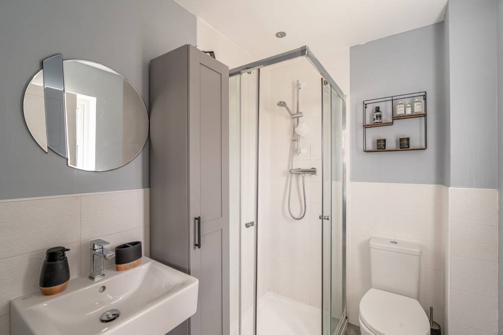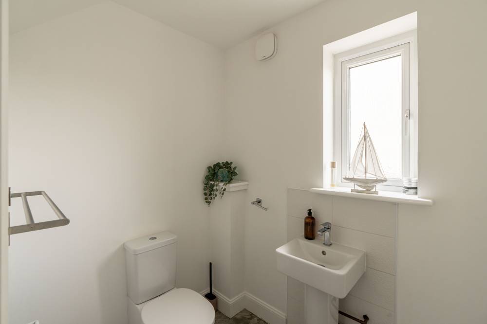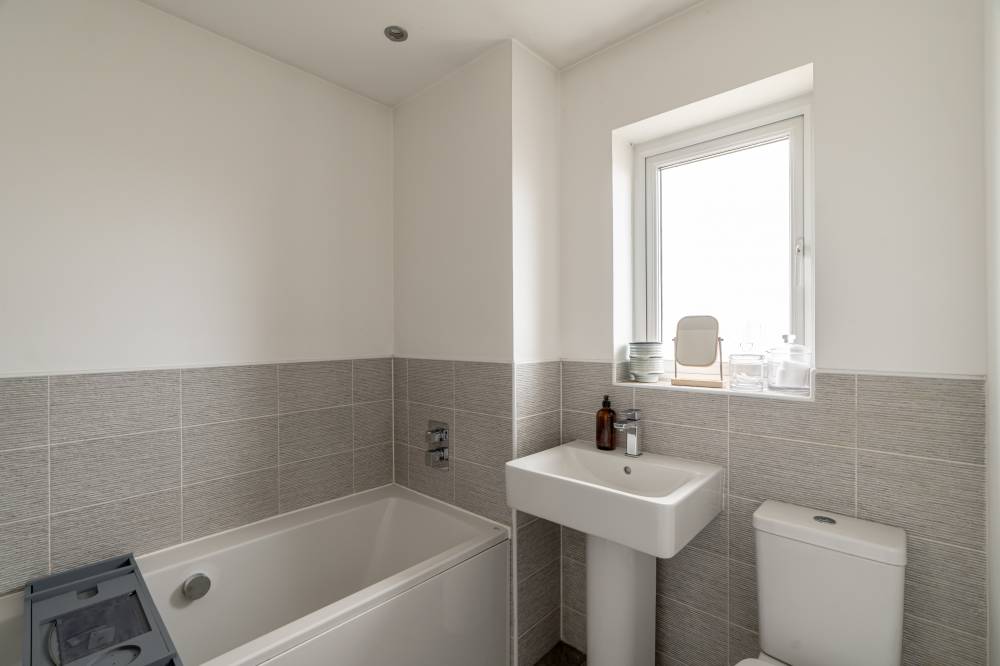 Internally, the property is presented in an immaculate condition while briefly comprising of; welcoming entrance hallway with an understairs storage cupboard, bright and airy lounge with a triple-aspect and French doors leading to the garden, modern fully-fitted kitchen/diner with a range of integrated white goods, French doors and a feature paneled wall while being styled with light units and a grey worktop, partially-tiled W/C, landing with access to the attic space, principal double bedroom with integrated wardrobes, a dual-aspect outlook and room for freestanding furniture, partially-tiled ensuite shower room with a single cubicle, second generous double bedroom with space for different configurations, third single bedroom currently used as a home office/study, and a partially-tiled bathroom suite.