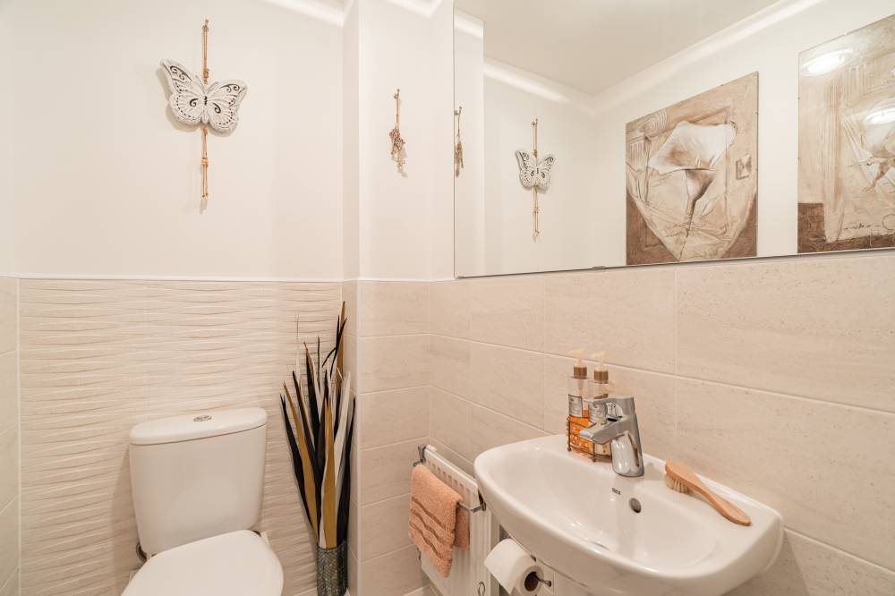 Externally, both the front and rear gardens have been landscaped to a superb standard. The rear garden features sandstone patio, chipstone areas, raised flower beds, and a garden shed. There is one allocated parking space to the rear of the property for residents’ use.