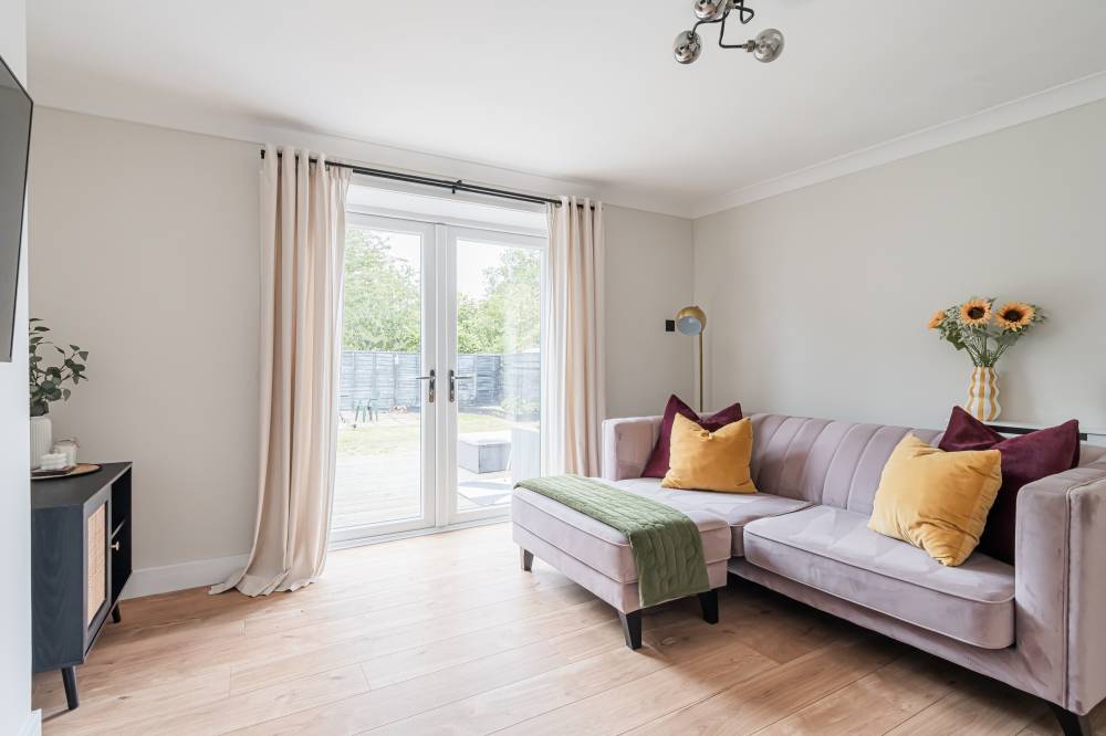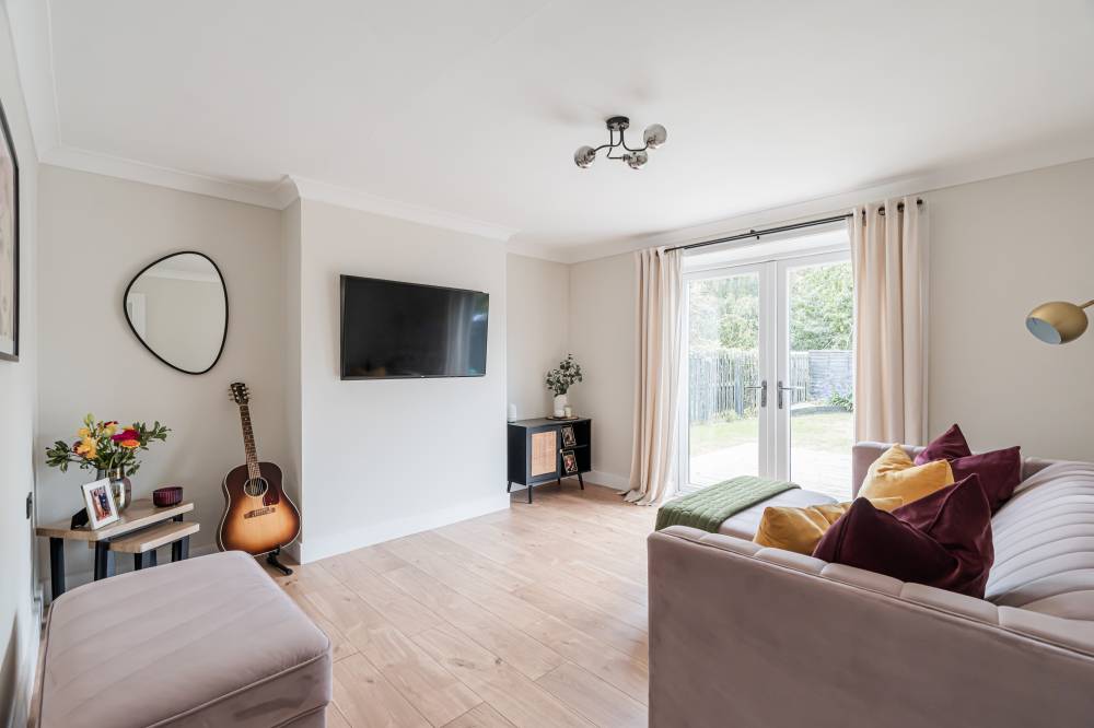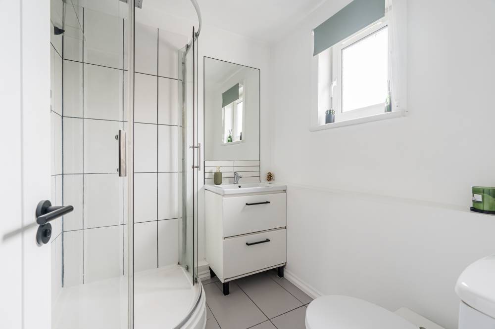 Internally, the accommodation comprises a welcoming entrance hallway, leading to a bright and spacious rear-facing lounge/diner with French doors providing direct access to the garden. The stylish, fully fitted kitchen includes a range of integrated white goods, sleek gloss white units, and tiling to splash areas. The good-sized double bedroom benefits from integrated storage and a pleasant rear-facing aspect, while the modern shower room features a corner cubicle, tiled flooring, partially tiled walls, and a wooden-panelled feature wall.