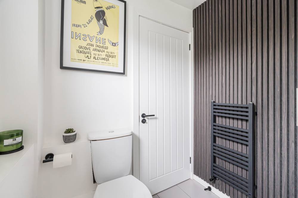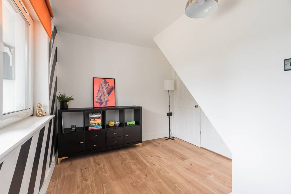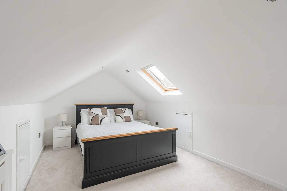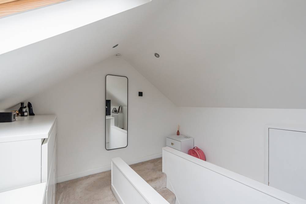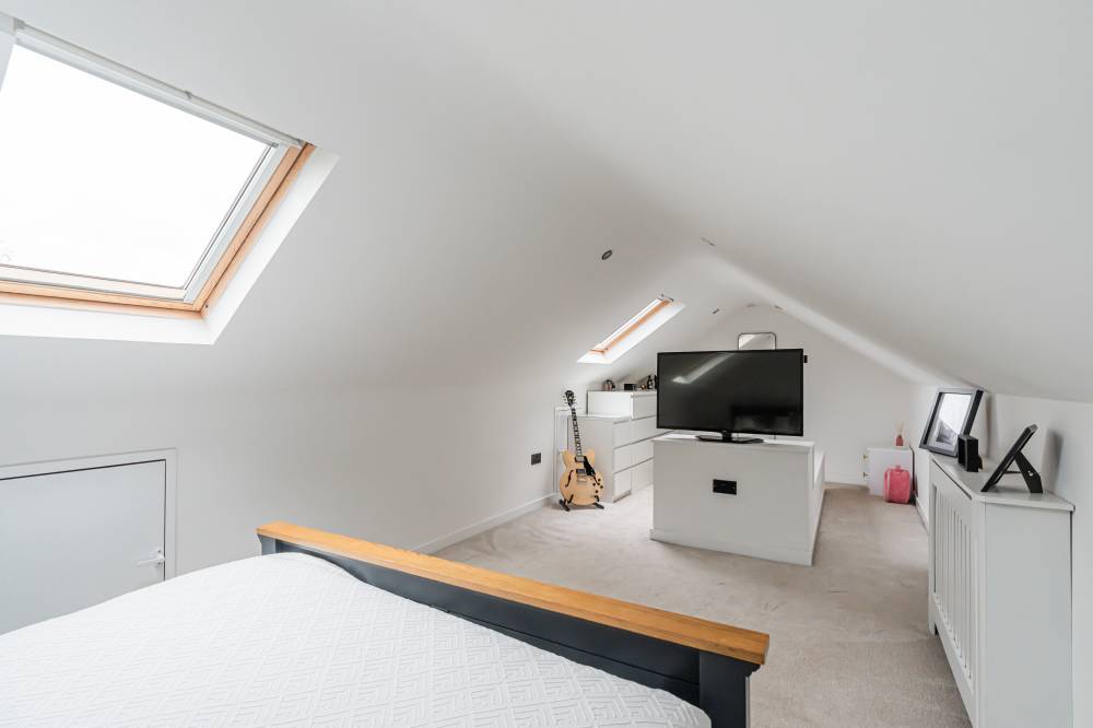 The property further benefits from a floored and lined attic space, with twin Velux windows and eaves storage, currently used as a bedroom by the present occupants.