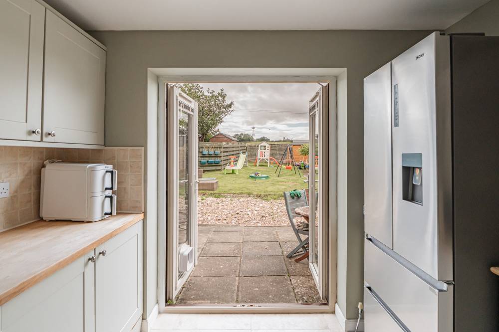 Externally, the property is complemented by a spacious, fully enclosed rear garden. Designed for both relaxation and recreation, it features a lawn, patio, and open outlooks over the surrounding countryside, the perfect setting for outdoor dining, children’s play, or simply enjoying the southerly sunshine.