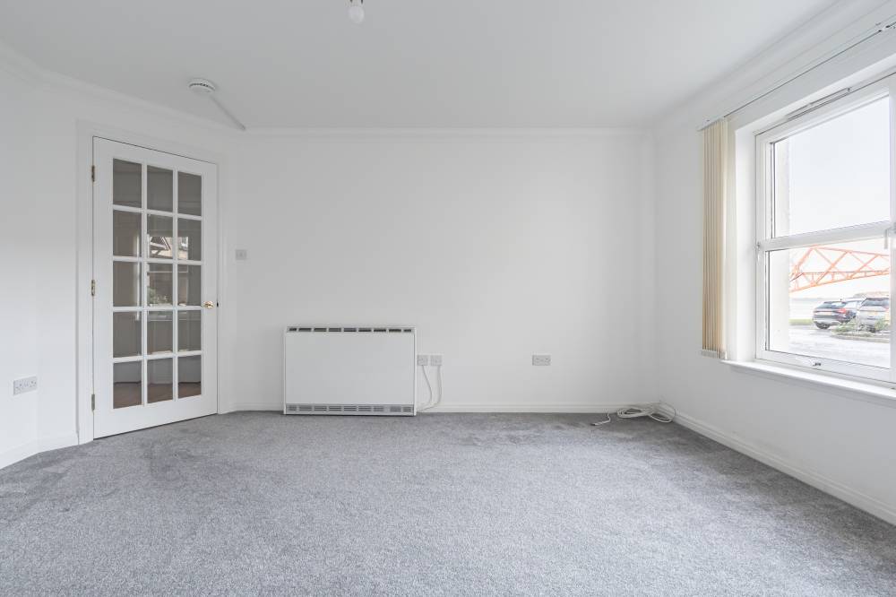 The accommodation is entered via a welcoming vestibule, leading to an internal hallway which provides access to all rooms and offers excellent storage options. The reception room is set to the front of the building, enjoying a bright and open aspect to the courtyard and showcasing the uninterrupted views of the iconic Forth Rail Bridge – an outstanding feature of this home. The kitchen is fitted with a range of wall and base units, complemented by a tiled splashback and incorporates an integrated oven and hob. The practical space offers scope for personalisation and is designed to maximise functionality. Both bedrooms are positioned to the rear of the property, offering a quiet and peaceful outlook away from the waterfront. The main bedroom is slightly larger in proportion, yet both are well-appointed and benefit from mirror-fronted built-in wardrobes, providing excellent storage without encroaching on floor space The accommodation is completed by a modern shower room, fitted with a white suite and thermostatic shower. Benefits include electric heating and full double glazing.