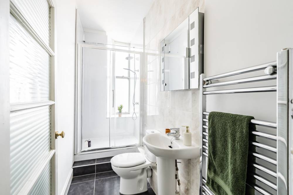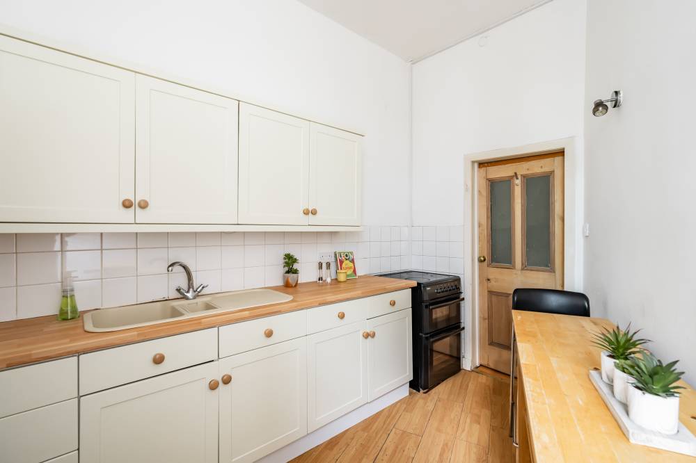 The well presented accommodation in brief comprises; secure entry system, welcoming hallway with useful large storage cupboards, light and airy twin windowed reception room with feature fireplace and beautiful cornicing, fitted kitchen with a range of base and wall mounted units and appliances, spacious principal bedroom with fitted wardrobes, good sized second double bedroom with Edinburgh press and shower room with mains shower. Further benefits include gas central heating and double glazing.