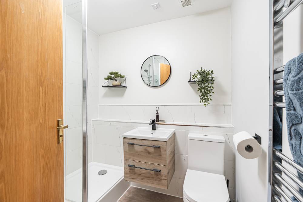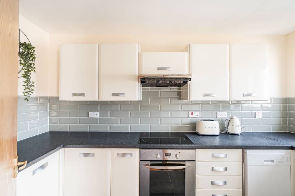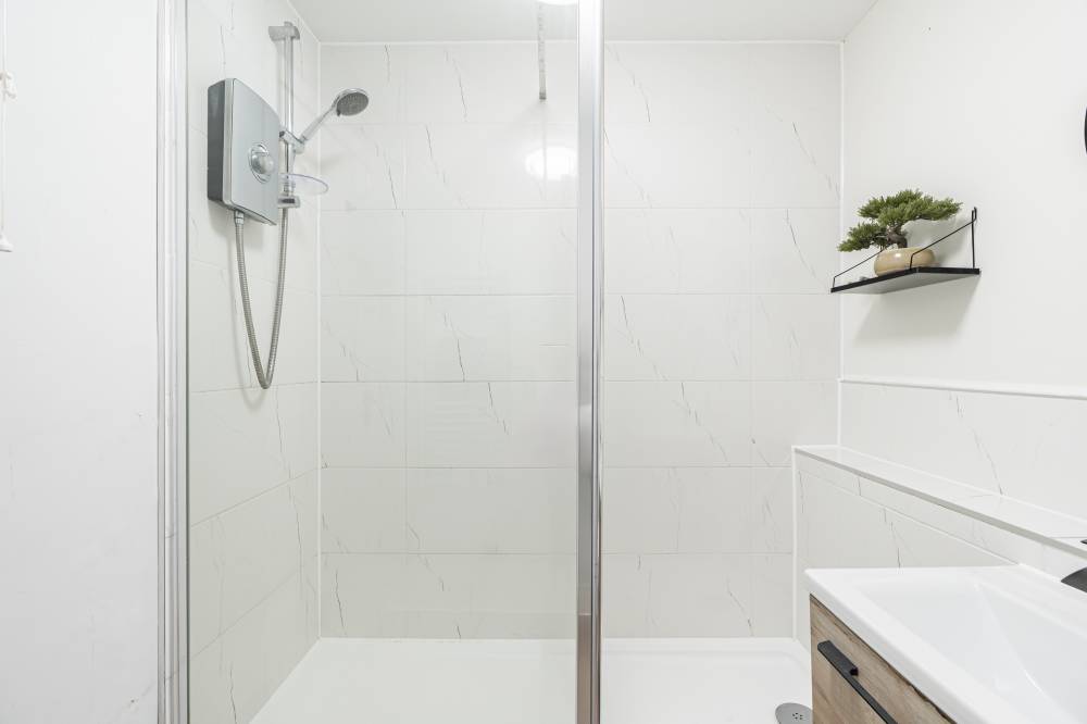 A welcoming hallway with a useful storage cupboard sets the tone for the home. The reception room is a bright and versatile living space, featuring full-height double doors opening to a Juliet balcony, laminate flooring, and a designated dining area, ideal for both relaxing and entertaining. The modern kitchen is well-equipped with a range of fitted wall and base units, contemporary tiling to splash zones, and quality integrated appliances including a Zanussi induction hob and oven. Its thoughtful layout ensures both style and functionality. Two generous double bedrooms are set peacefully to the rear of the property, each benefiting from carpet flooring and mirrored built-in wardrobes, offering excellent storage. A modern shower room completes the accommodation, fitted with a contemporary two-piece white suite, a large cubicle with an electric shower, and stylish tiling throughout.