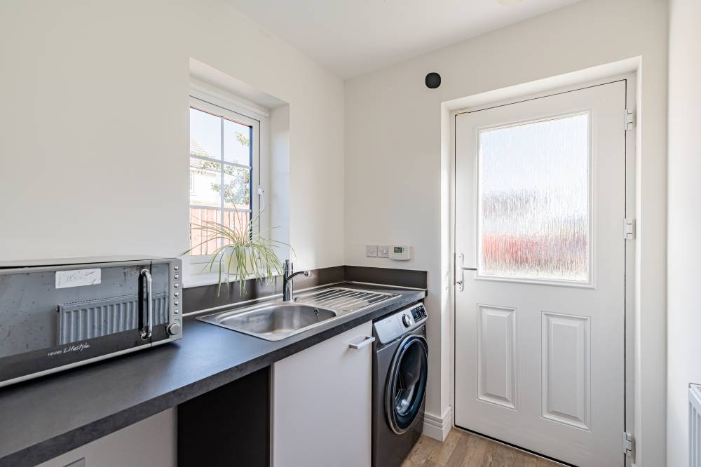 Set on a larger than average plot, the house enjoys substantial front and rear gardens. To the front, the garden is predominantly laid to lawn with a monoblock pathway leading to the front door. There is a generous monoblock driveway leading to the garage which has power, light, an up-and-over door and also houses the Worcester boiler, which is still under warranty. The generous rear garden has been attractively landscaped with lawn, decking and patio areas, ideal for al fresco dining during the warmer months. Secure gated access provides a convenient link to the front of the house.