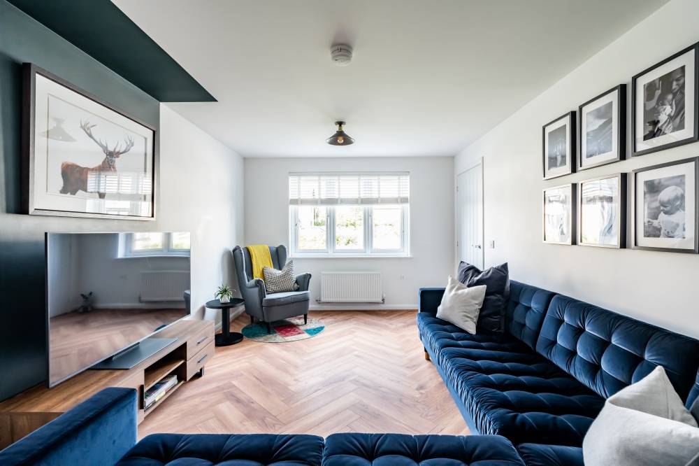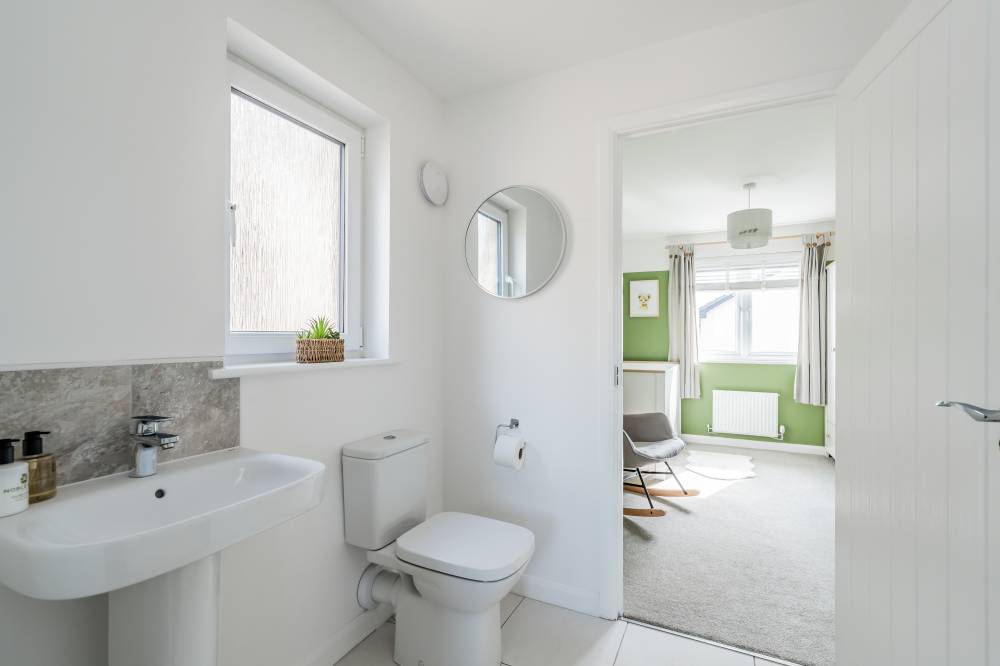 The accommodation comprises: a welcoming entrance hallway with attractive tiled flooring and a useful understairs cloak cupboard, a bright and airy front-facing lounge providing the perfect space to relax, and a stylish fully fitted kitchen/diner boasting a range of upgraded integrated white goods, mood-setting under-unit and kickboard lighting, large pantry cupboard, tiled flooring, and French doors opening to the garden – a fantastic space for everyday living and entertaining. A handy WC with garage access completes the ground floor. Upstairs, the landing features a linen cupboard, tank cupboard, and partially floored loft access. The principal bedroom is a spacious double with integrated wardrobes, an additional storage cupboard, and a pleasant front aspect outlook, served by a sleek en-suite shower room with double cubicle, partial tiling, and tiled flooring. The second bedroom is another generous double with twin windows and integrated wardrobes, sharing a modern Jack and Jill en-suite with the third bedroom, which enjoys a peaceful rear outlook and ample space for freestanding furniture. The fourth bedroom is also a sizeable double, with flexibility for different layouts and freestanding wardrobes included. A well-appointed family bathroom with bath, partial tiling, and tiled flooring completes the interior.