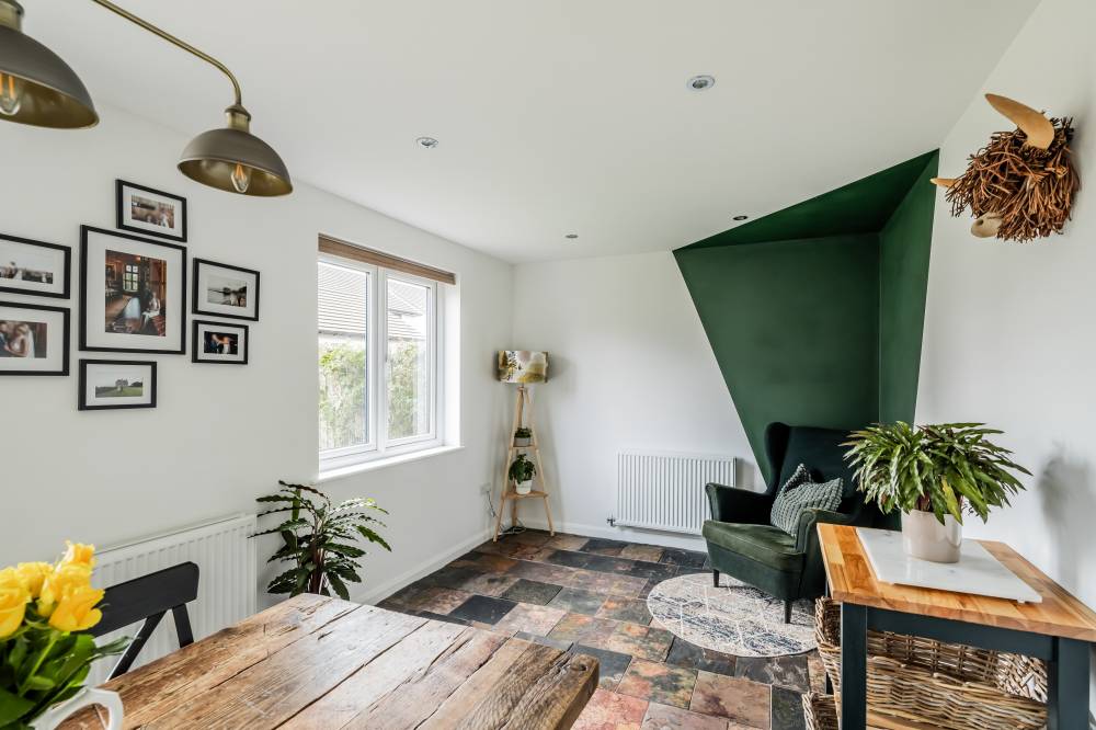 Externally, the property boasts private front and rear gardens, with the south-facing rear garden enjoying a sunny aspect and beautifully landscaped finish incorporating a chip-stone section and well-kept lawn, as well as the convenience of an outdoor tap. A single garage and double driveway provide excellent off-street parking.