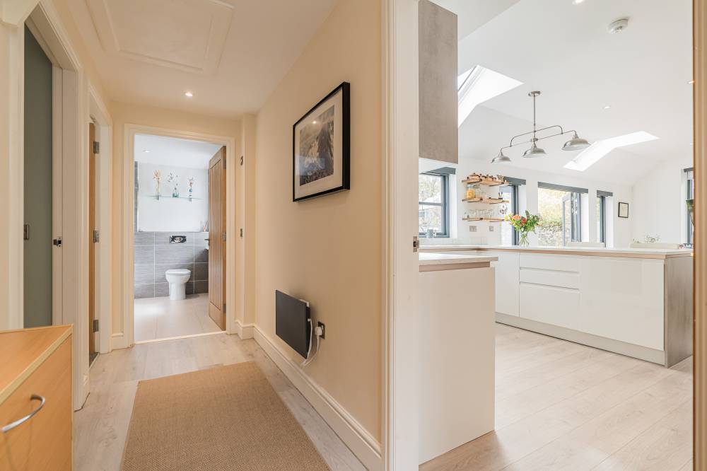 Most windows are fitted with high-specification electric roller blinds, which can be controlled via remote or Wi-Fi. These blinds are also programmed on a timer, automatically adjusting in line with sunrise and sunset throughout the year. Excellent storage is provided, including a partially floored loft space accessed from the hallway via a Ramsay ladder.