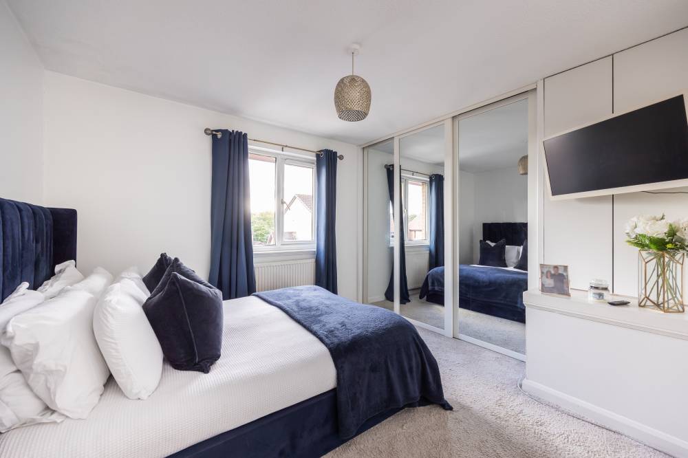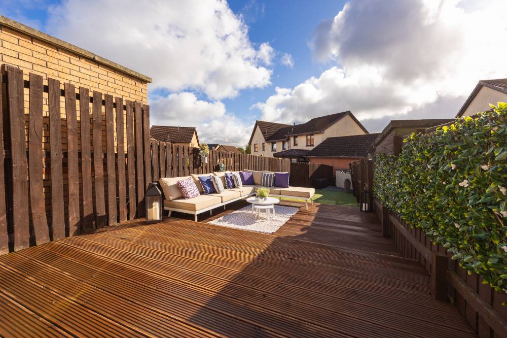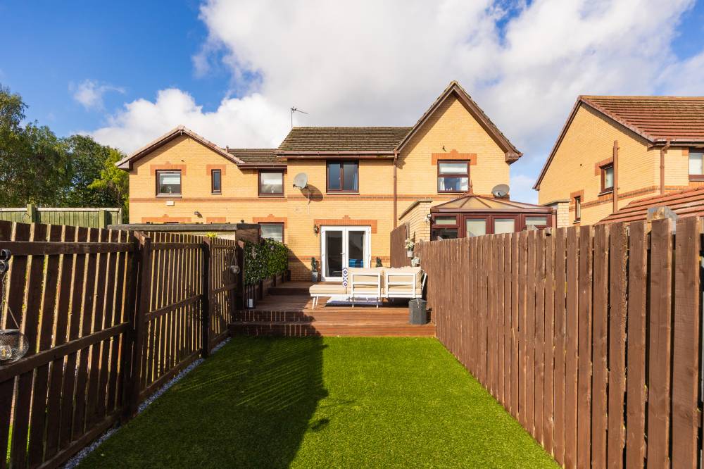 Externally, the home benefits from a landscaped rear garden with a two level decking area directly accessed from the reception room, leading onto a low-maintenance artificial lawn. A private walkway to the front of the property adds to the sense of privacy. Residents and visitors can also enjoy dedicated parking within the development.