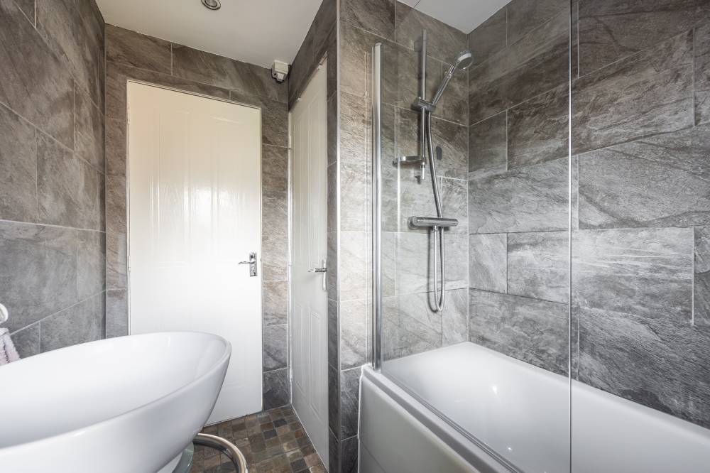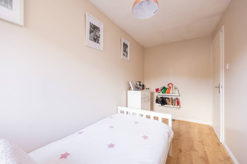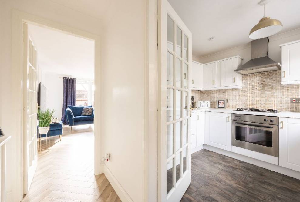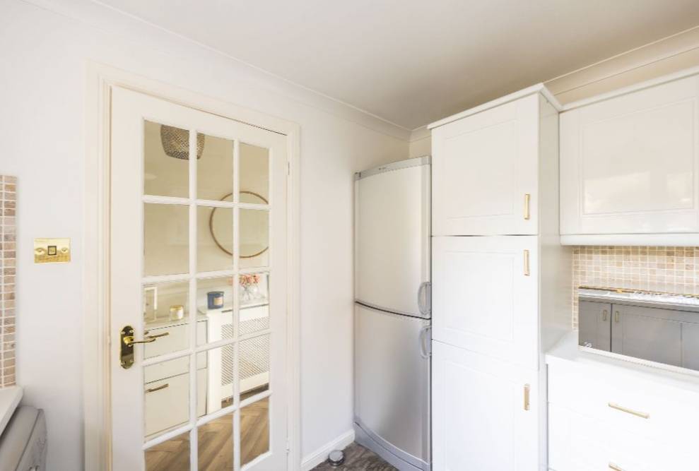 The property is entered via a welcoming hallway, which leads seamlessly to all principal rooms and provides a practical sense of space. At the rear, the bright and airy reception room features a full-height glazed door opening directly onto the landscaped garden. An open staircase and stylish flooring enhance the contemporary feel, creating a versatile space for both everyday living and entertaining. The modern kitchen is fitted with sleek white wall and base units, complemented by tiled splash zones and ample workspace. It offers a practical and functional environment for cooking, with room for appliances and storage. The principal bedroom is a generous double, complete with triple built-in wardrobes and additional storage, providing both comfort and convenience. The secondary bedroom, located to the front of the property, is a compact double with laminate flooring, suitable as a bedroom, home office, or flexible living space. A stylish and fully tiled bathroom completes the accommodation, featuring a contemporary white three-piece suite with a thermostatic shower and chrome towel rail, offering both practicality and modern elegance.