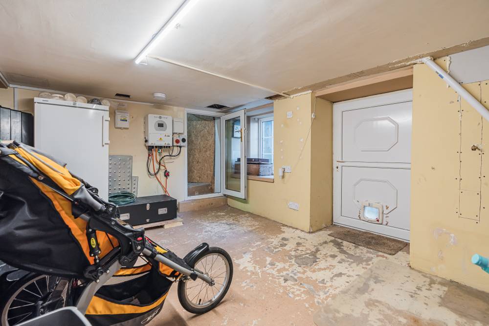 The basement has been cleverly adapted to provide a highly practical utility room, keeping household tasks neatly separate from the main living space.