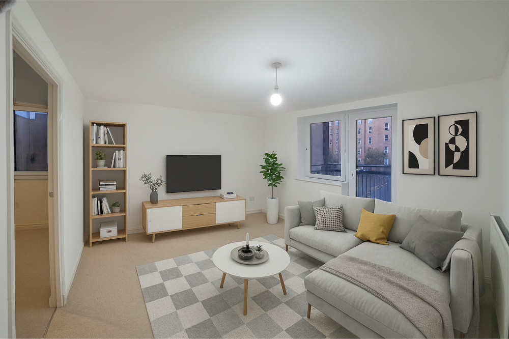 The lounge has been subject to virtual staging. It should be noted that the room is currently empty as per the “before” image which has also been uploaded for perusal.