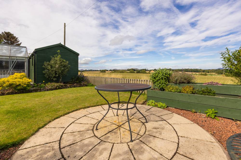 The property is complemented by lovingly landscaped gardens to the front and rear. The rear garden features two attractive patio areas, perfect for outdoor dining and entertaining. A range of outbuildings further enhance the space, including a large shed with power and light, a greenhouse, and a log store, offering excellent storage and practicality. A driveway to the front of the property offers off-street parking for two vehicles.