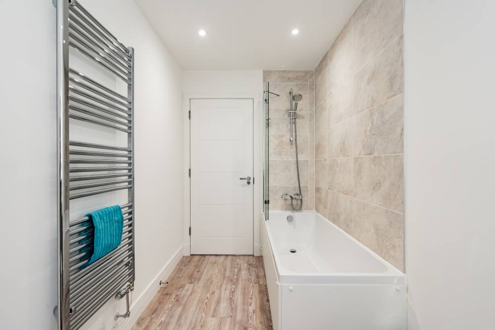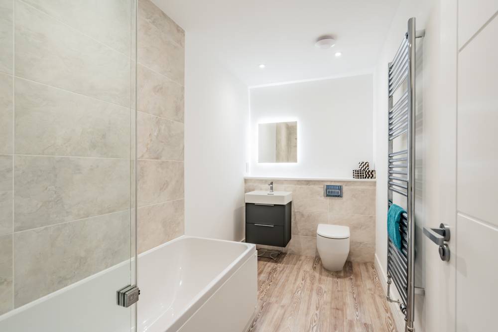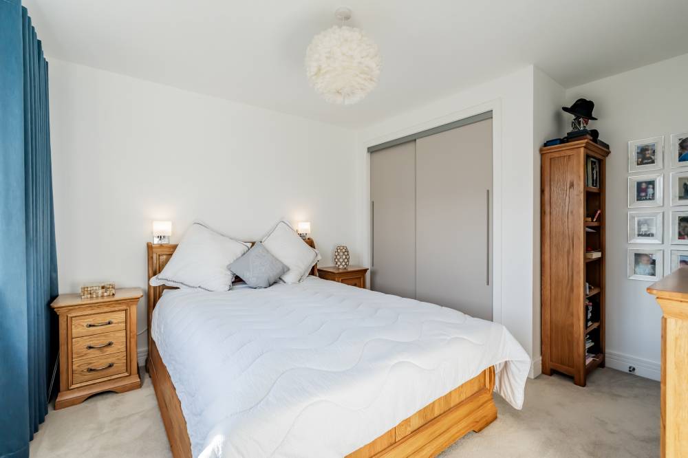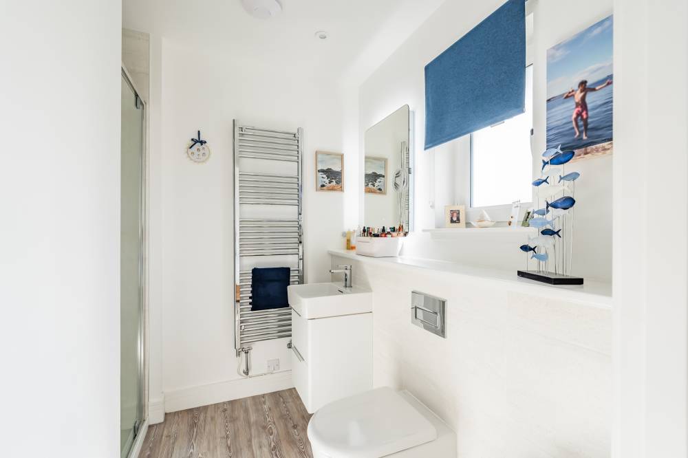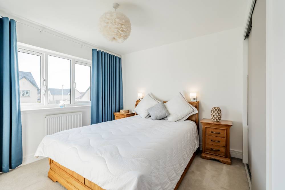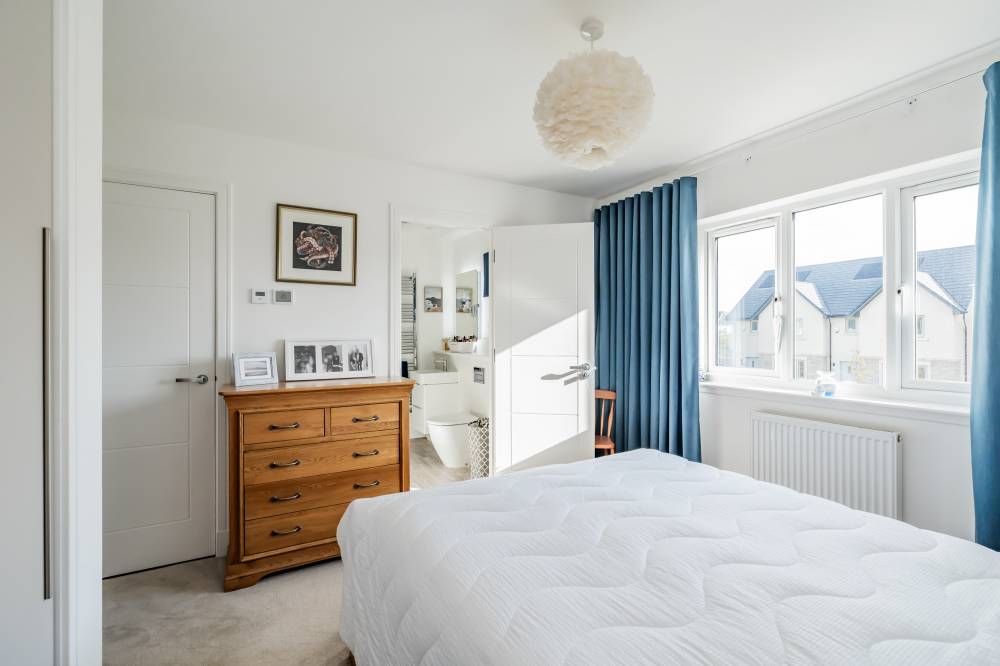 Moving upstairs, the light-filled and comfortable principal double bedroom benefits from a built in wardrobe and a modern en-suite rainfall shower room. There are two further appealing bedrooms, both with a built in wardrobe. These share access to a contemporary family bathroom with a white suite, heated towel rail, and bath with wall-mounted shower. The property also benefits from gas central heating, double glazing, solar panels, an alarm system, and the reassurance of CALA’s renowned build quality.