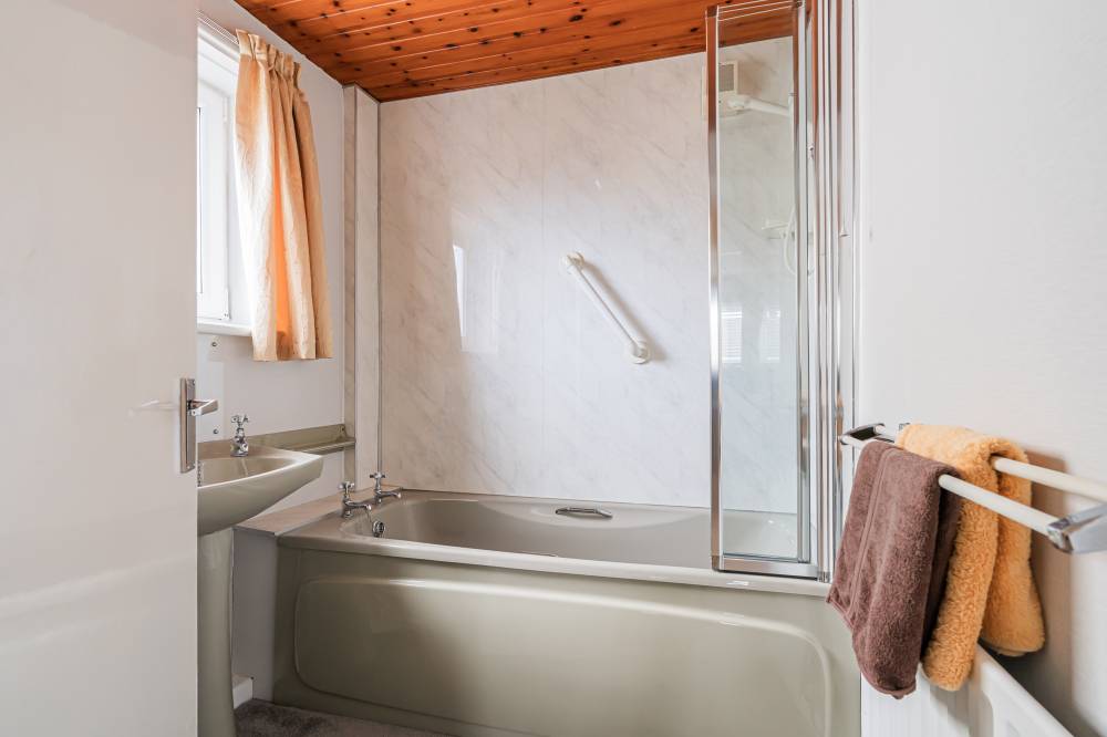 The property has been well preserved over the years by the existing owner but offers excellent scope to upgrade/modernise to suite individual taste. Well suited to the young family the internal accommodation briefly comprises: entrance porch, hallway with stair to the upper level and built-in storage, bright and comfortable dual facing reception room with carpeted floor, coving and focal fireplace, well equipped kitchen which provides easy access to the back garden and has been fitted with a variety of wood base and wall mounted units, complete with splash tiling, wipe clean worktops and clothes pulley, generously sized principal bedroom with storage and a bright south facing aspect, second double bedroom quietly located to the rear overlooking the rear garden, and finally a family bathroom with three piece colour suite, wet wall panelling, splash screen and shower.