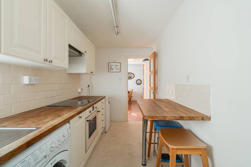 The accommodation briefly comprises; entrance hallway, light and airy dual aspect lounge/dining room, modern kitchen with a range of wall and base units with wooden worktops, subway style splashback tiling and a breakfast bar, a good size double bedroom with built in storage, and a bathroom with a white suite, heated towel rail and shower over the bath. The property further benefits from an attic and electric heating.