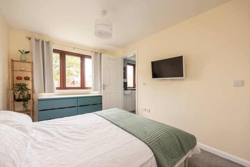 Offered to the market in move-in condition, this fine home, which enjoys a private leafy aspect to the rear shall undoubtedly appeal to the professionals or families alike and merits internal viewing to be fully appreciated. The light and stylish accommodation comprises entrance hallway with useful two piece WC apartment off. There is a lovely, well-proportioned lounge/diningroom with French doors leading to the with attractive and secluded rear garden. A sizeable breakfasting kitchen with front aspect, is fitted with ample wall and base units with built-in gas hob, electric oven, hood and integrated fridge freezer with adequate space for table and chairs. A carpeted staircase leads to the upper floor which houses the three good sized bedrooms, two benefiting from built-in wardrobes with the principal bedroom benefiting from a modern ensuite shower room. The family bathroom comprises of a white three piece suite. In addition, there is a partially floored attic providing excellent storage provisions and further benefits include a NEST controlled gas central heating system together with double glazed window units.