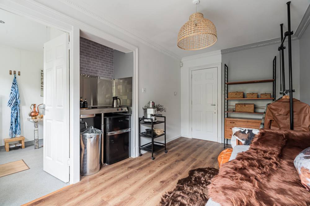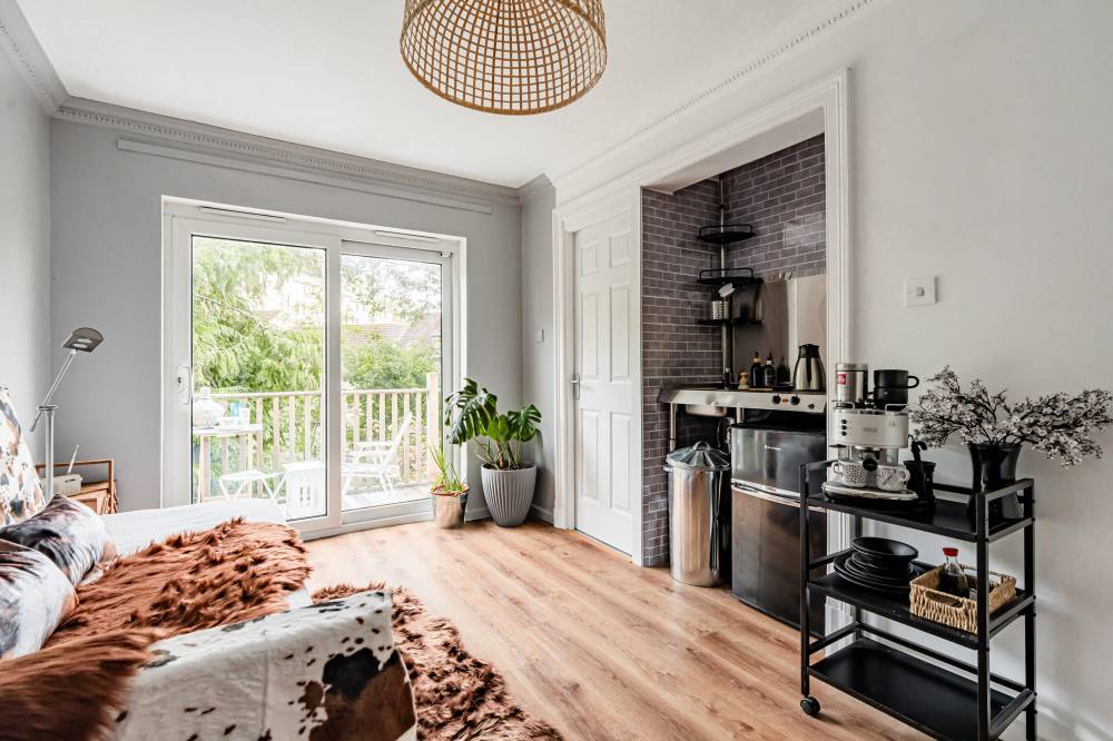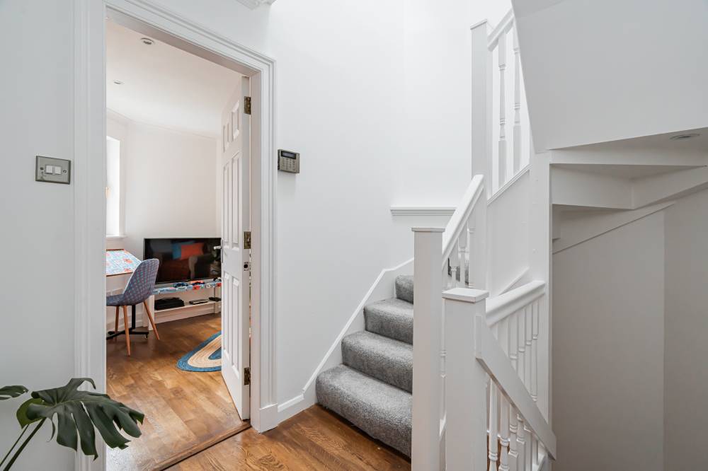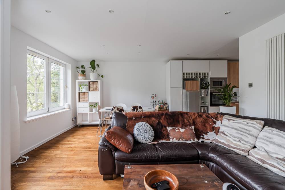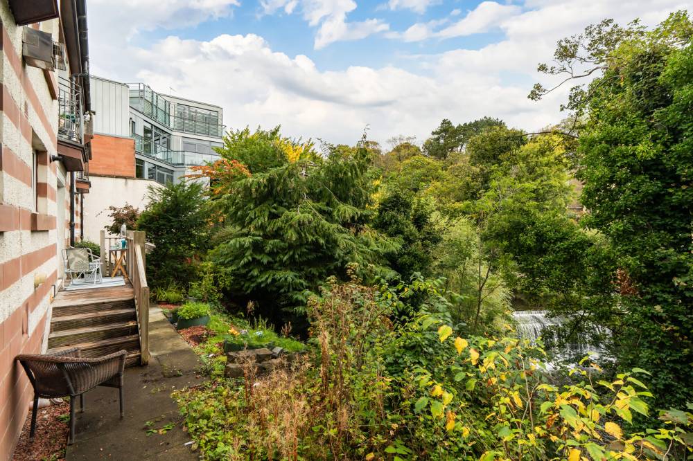 The property benefits from an integrated single garage, an outdoor terrace and small garden plot sitting on the embankment of Waters of Leith, providing an ideal space to enjoy dining/relaxing.