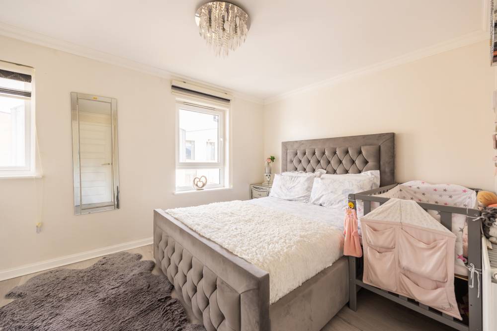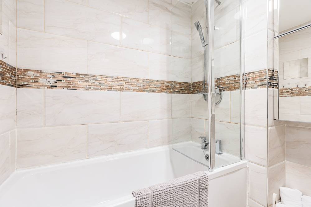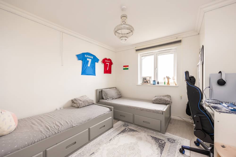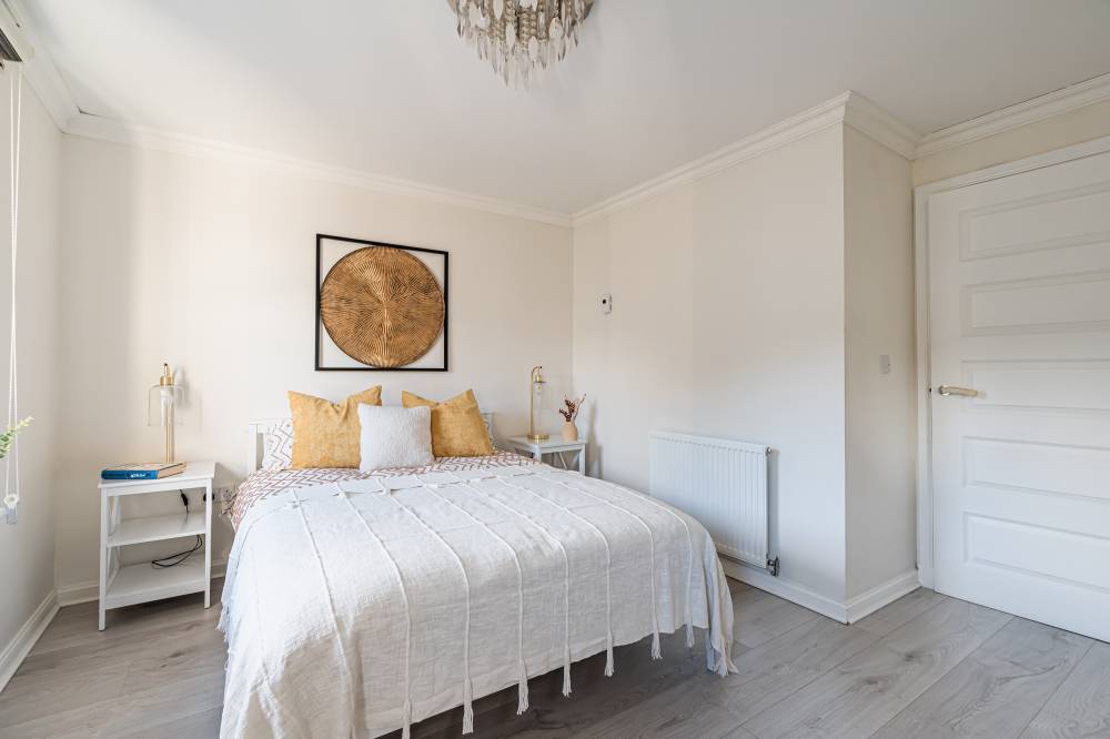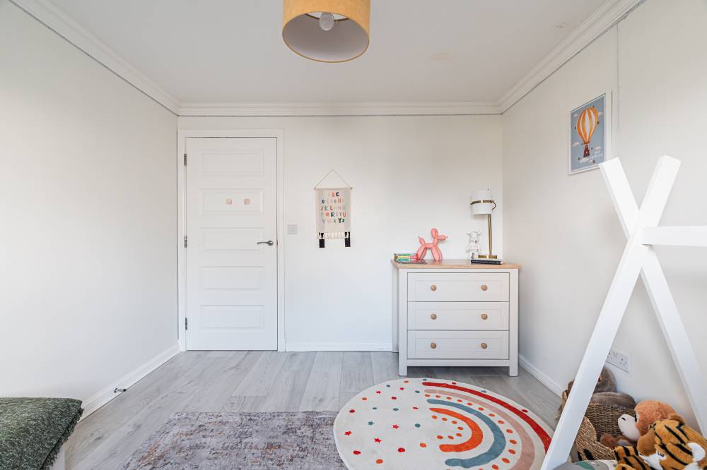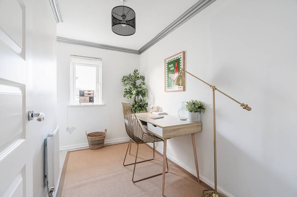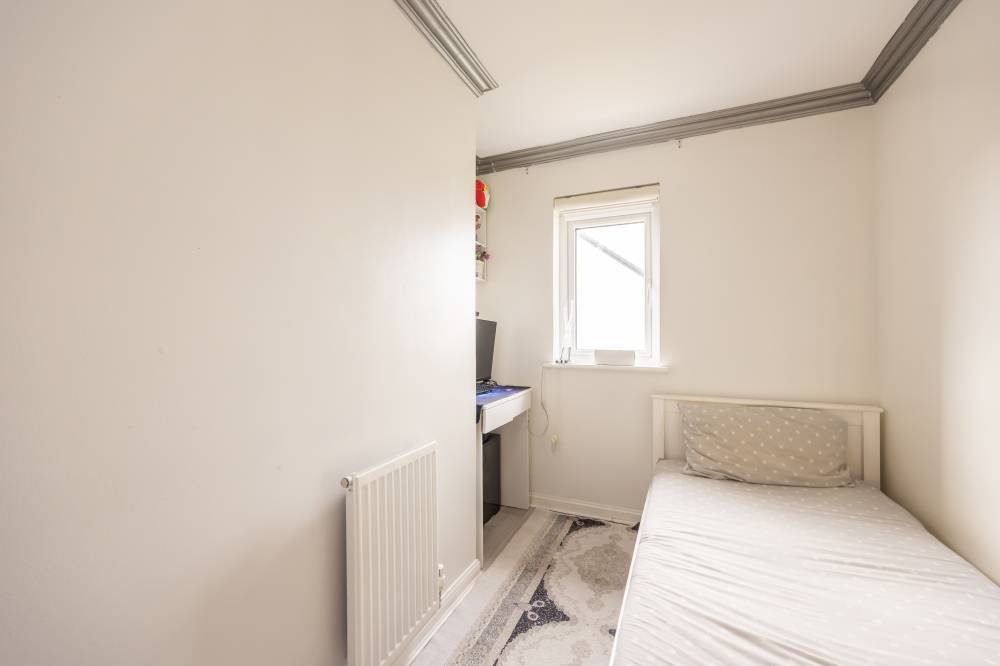 Moving upstairs there are two double bedrooms, the principal having a built in storage cupboard, a single bedroom which would make an ideal nursery or home office, and a fully tiled bathroom with a white suite and overhead rainfall shower. There is also a floored attic with a Ramsay ladder and light. The property further benefits from gas central heating, double glazing, and solar panels.