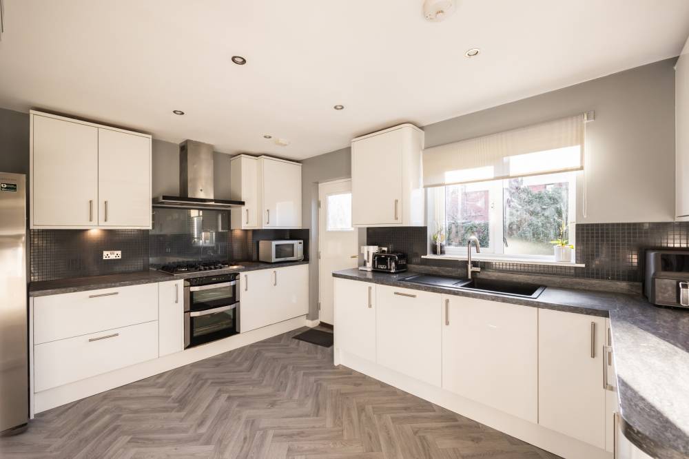 A welcoming entrance hallway provides access to the ground floor accommodation. The spacious and bright lounge enjoys a pleasant outlook and features double doors leading through to the formal dining room, creating an ideal flow for both everyday living and entertaining. The modern kitchen is well equipped with a range of integrated and freestanding white goods, under-unit lighting, partially panelled splashback areas and a useful storage cupboard. Sliding doors from the dining room open directly onto the rear garden. Further enhancing the ground floor is a second reception room, formed from a garage conversion and accessed from the kitchen, offering excellent flexibility as a family room, home office or playroom. Completing this level is a convenient two-piece WC with partial tiling and heated towel rail.