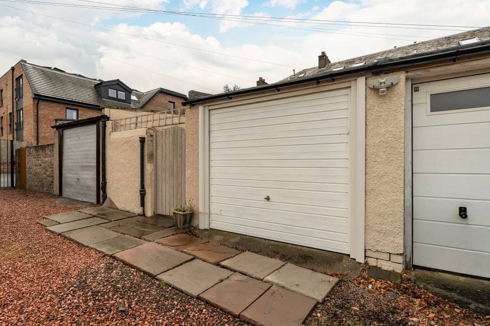 The welcoming hallway incorporates discreet pop-out doors housing an understairs utility with washing machine and tumble dryer. To the front, the bay-windowed lounge is a light-filled reception space, complete with a gas fire and mantlepiece, traditional Edinburgh Press, and beautiful views towards Arthur’s Seat. To the rear, the stylish kitchen diner forms the social heart of the home, fitted with a mix of integrated and freestanding appliances, a panelled splashback, under-unit lighting, and a further Edinburgh Press. Sliding glass doors open directly to the rear garden, creating seamless indoor-outdoor living. The ground floor has engineered oak wood flooring throughout with tiling to the vestibule and kitchen.