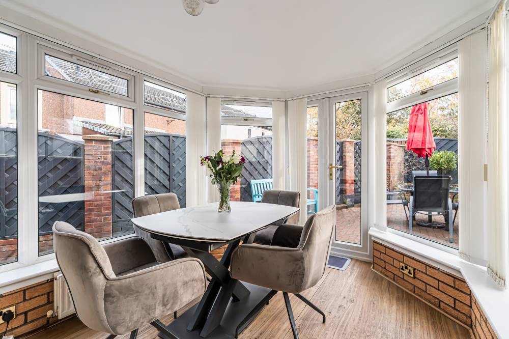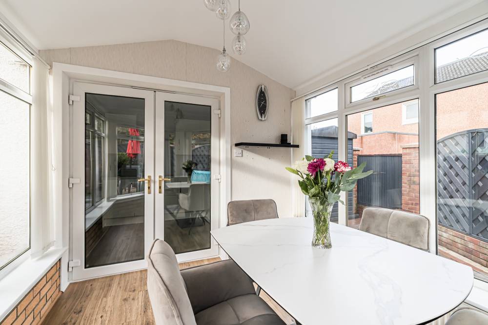 Internally, the property in brief comprises; welcoming entrance vestibule, fantastic sized reception room with excellent natural light, stunning fitted kitchen with ample units, French doors providing access to the light and airy conservatory which in turn leads to the private rear garden, generous sized principal bedroom with en-suite shower room, two further well proportioned bedrooms with fitted storage and shower room. Further benefits include gas central heating and double glazing.