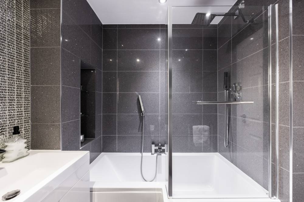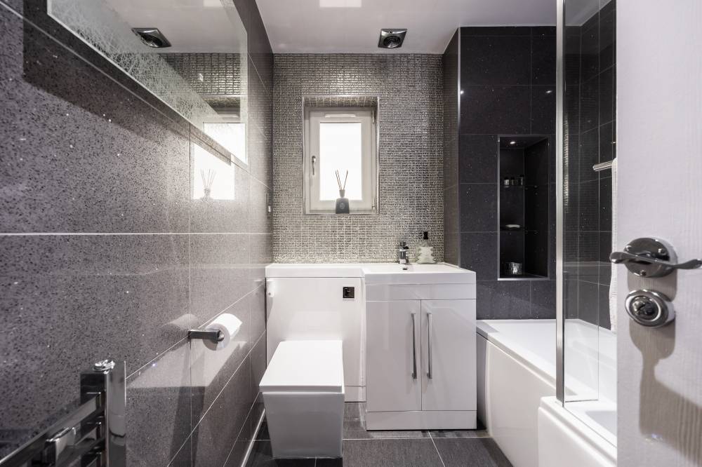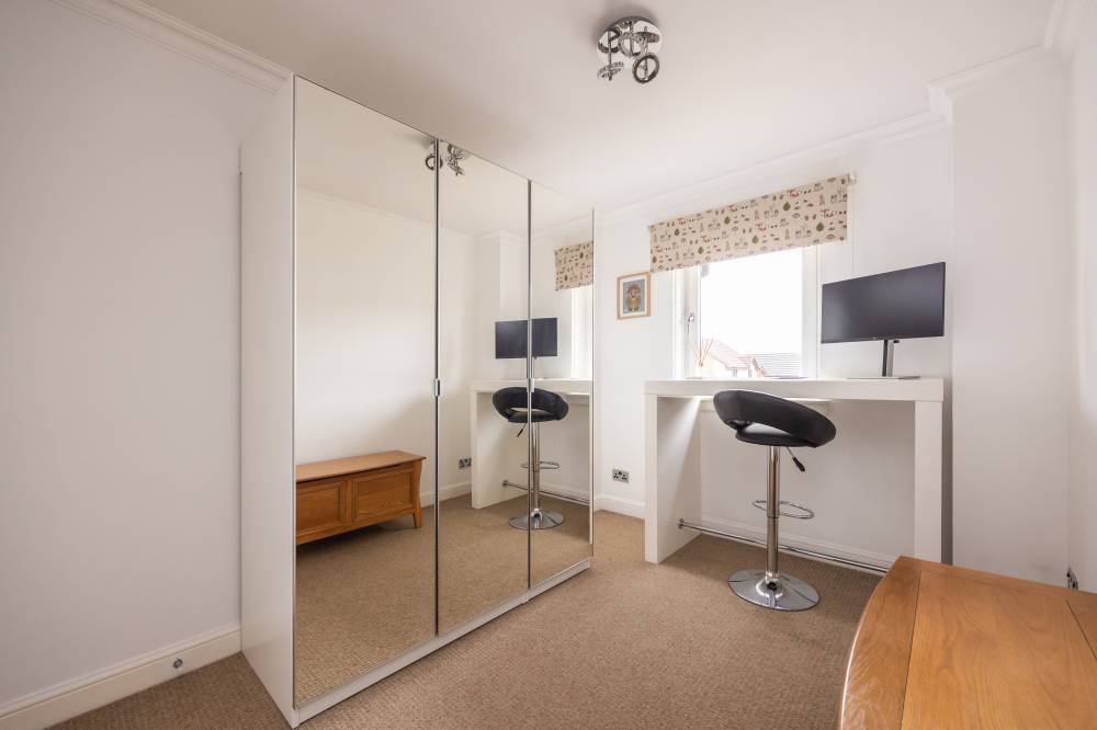 The property forms part of an established modern development and has been tastefully refurbished by the current owner. The accommodation is well laid out and bright and welcoming, with a versatile public room perfect for relaxing or entertaining. The modern kitchen is fitted with high-gloss wall and base units, complemented by a solid wooden worktop and breakfast bar, creating a practical and stylish space for daily living. Patio doors from the kitchen lead directly to the fully enclosed rear garden, providing a safe and private outdoor area for children, pets, or alfresco dining. Both bedrooms are well-proportioned and benefit from integrated storage, ensuring a clean and uncluttered living environment. A fully tiled contemporary three-piece bathroom completes the accommodation, designed to a high standard with modern fixtures and finishes.
