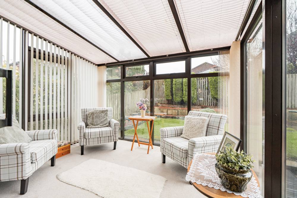 The property is entered via a welcoming hallway, which includes useful storage and a convenient WC. The dual-aspect reception room is bright and spacious, extending into a rear conservatory and offering ample space for both seating and dining furniture. The fitted kitchen is equipped with wooden wall and base units, integrated appliances including a fridge freezer, hob, and oven, creating a practical and well-appointed cooking area. The principal bedroom is a generous double to the front aspect, featuring built-in wardrobes and a modern en-suite shower room. Two further double bedrooms are located to the quiet rear of the property, overlooking the garden, and are fitted with mirror-fronted built-in wardrobes. The family bathroom is part-tiled and fitted with a three-piece suite and vanity storage, providing both style and functionality.