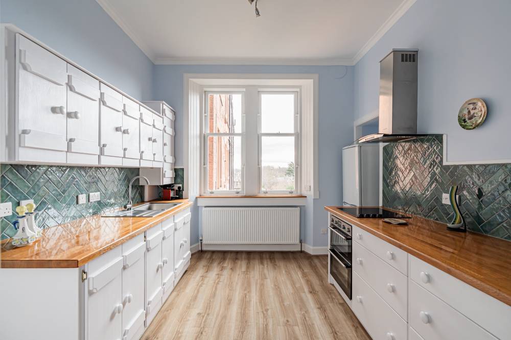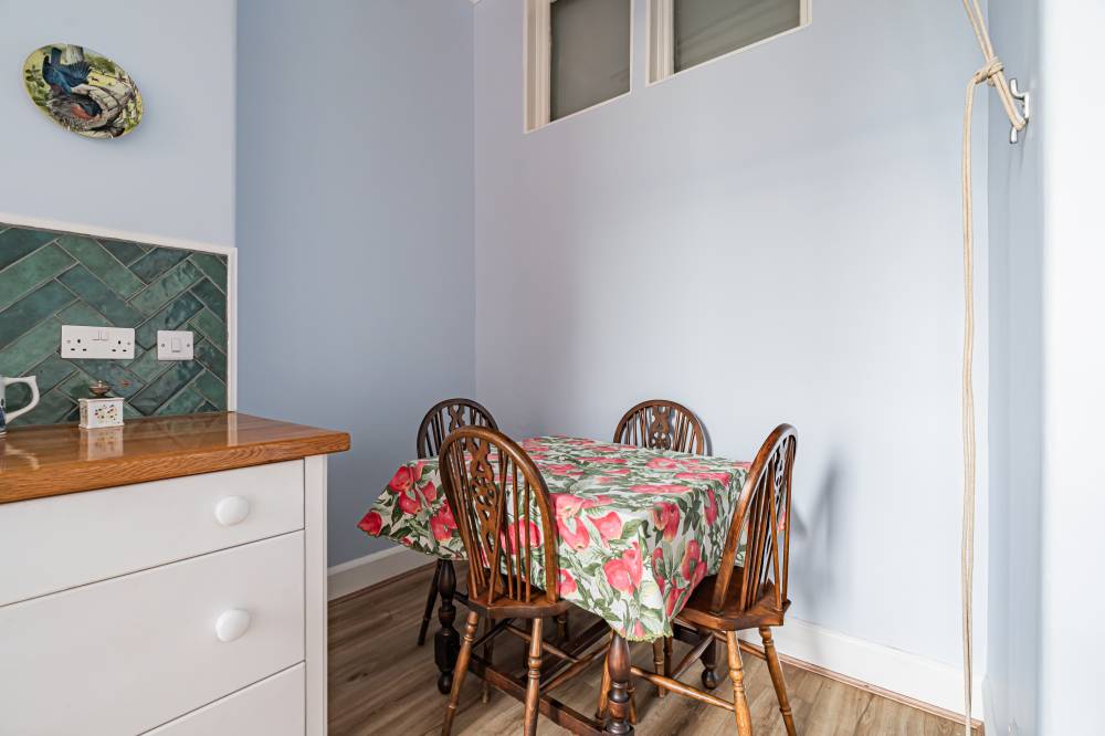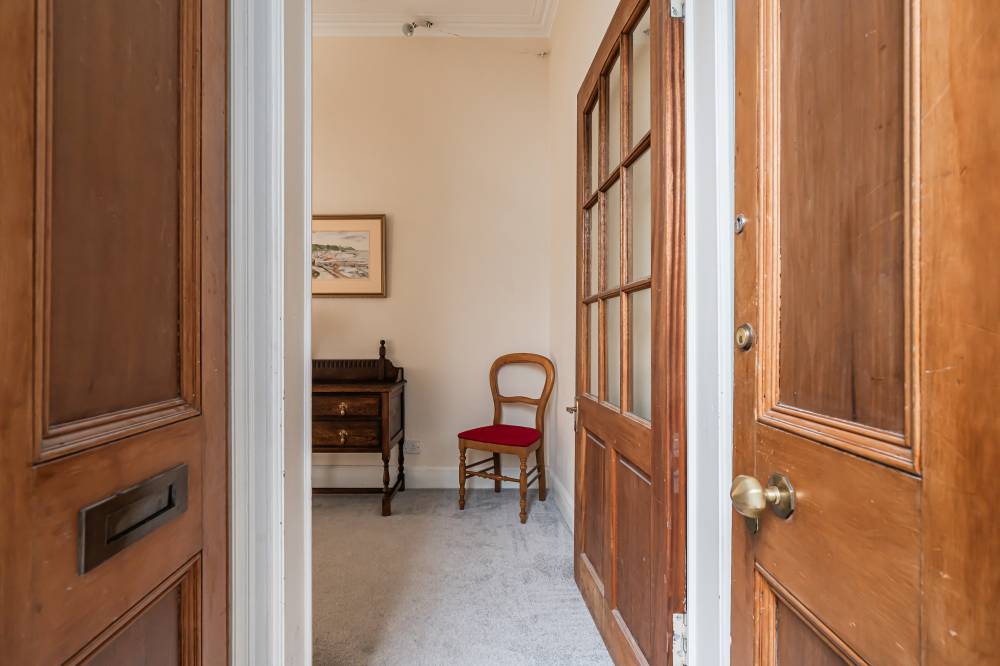 The accommodation briefly comprises; secure entry system, a spacious and welcoming hallway with a useful storage cupboard, a bright bay-windowed reception room featuring an open fireplace and elegant cornicing, a well-proportioned kitchen/dining room with a bespoke kitchen handcrafted by a local artisan, complete with solid wood units, oak worktops and a pantry, a generous double bedroom, a versatile box room ideal as a home office, and a contemporary shower room.