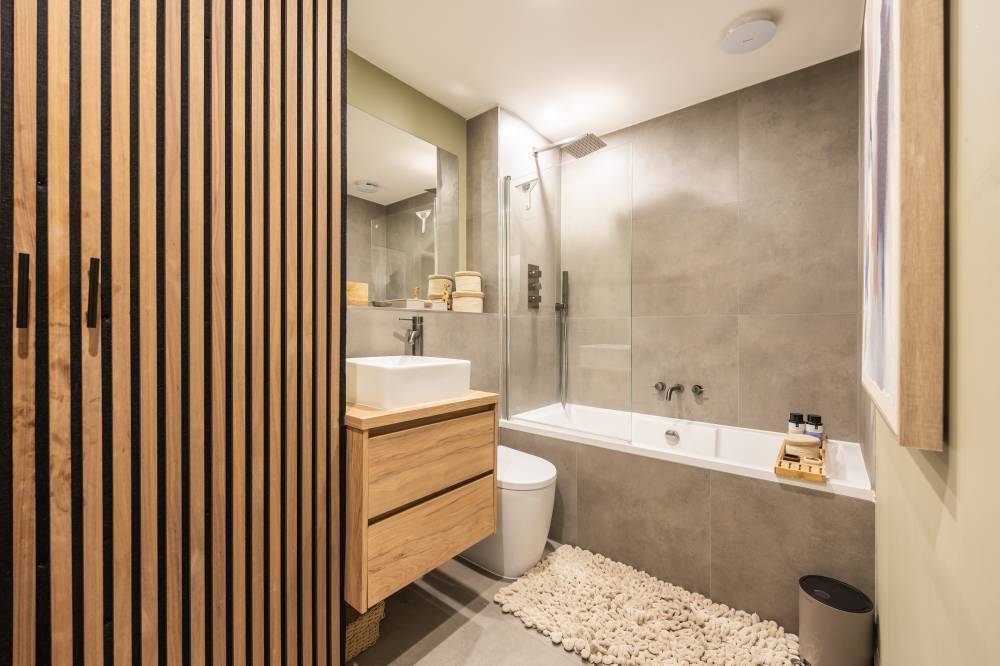 The main bathroom has been stunningly designed to provide a spa-like feel, featuring a crisp white three-piece suite with a dual-headed thermostatic shower over the bath, a heated ladder radiator, and a range of stylish fixtures and fittings. A discreet utility cupboard offers additional storage and space for laundry appliances, helping to keep the living areas clutter-free. Additional benefits include partial floored loft with ladder access for additional storage, gas central heating, double glazing, and a secure entry system, ensuring comfort and peace of mind all year round.
