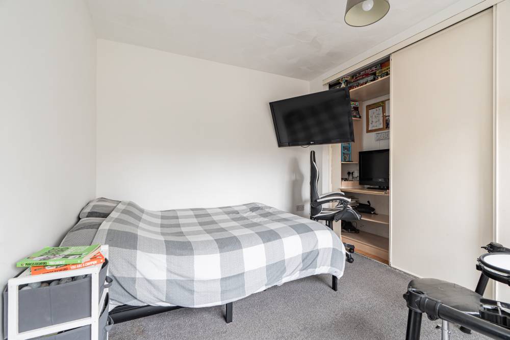 Externally, sliding doors open onto a private decked terrace – an ideal spot for relaxing or entertaining – whilst well-maintained communal gardens extend beyond and surround the property to the front, side, and rear. For the car owner, there is unrestricted on-street parking to accommodate both residents and visitors alike.