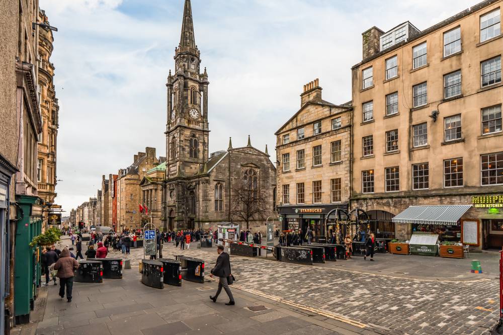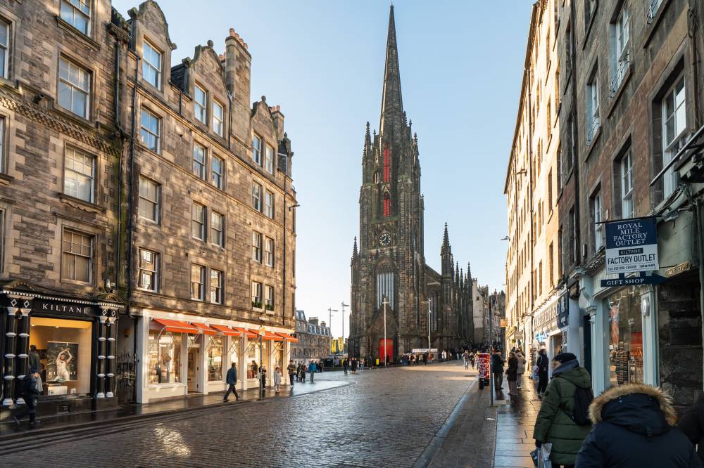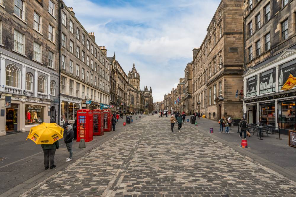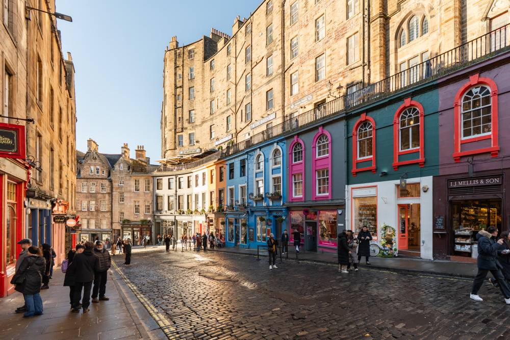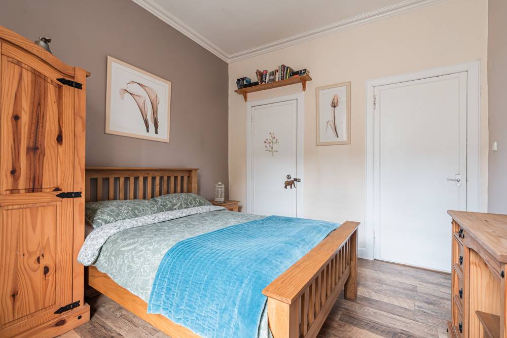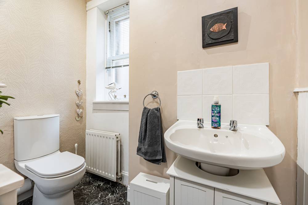 A welcoming entrance hallway provides access to all main apartments. The bright and airy lounge enjoys a pleasant outlook over Cockburn Street and features an electric fireplace along with a traditional Edinburgh press cupboard, creating a warm and characterful living space. The spacious kitchen diner is fitted with a range of freestanding white goods and finished with partial tiling in splash areas for easy upkeep. There is ample space for a dining table and chairs, making this a practical and sociable area for everyday living. The generously proportioned double bedroom benefits from a large built-in cupboard and offers excellent space for freestanding furniture and flexible layout options. Completing the accommodation is the bathroom, fitted with a three-piece suite including a corner bath with shower over.