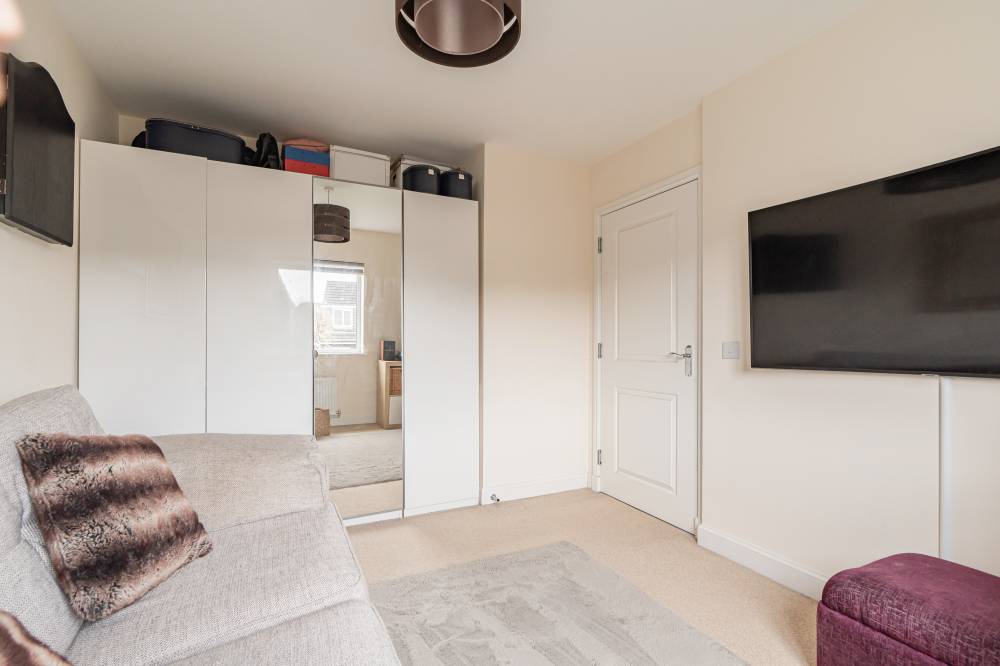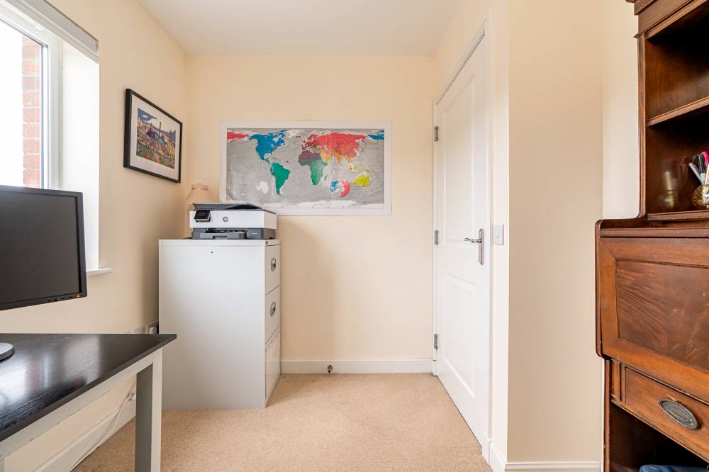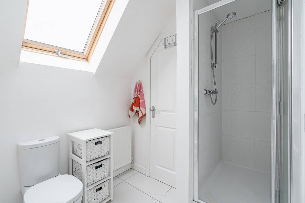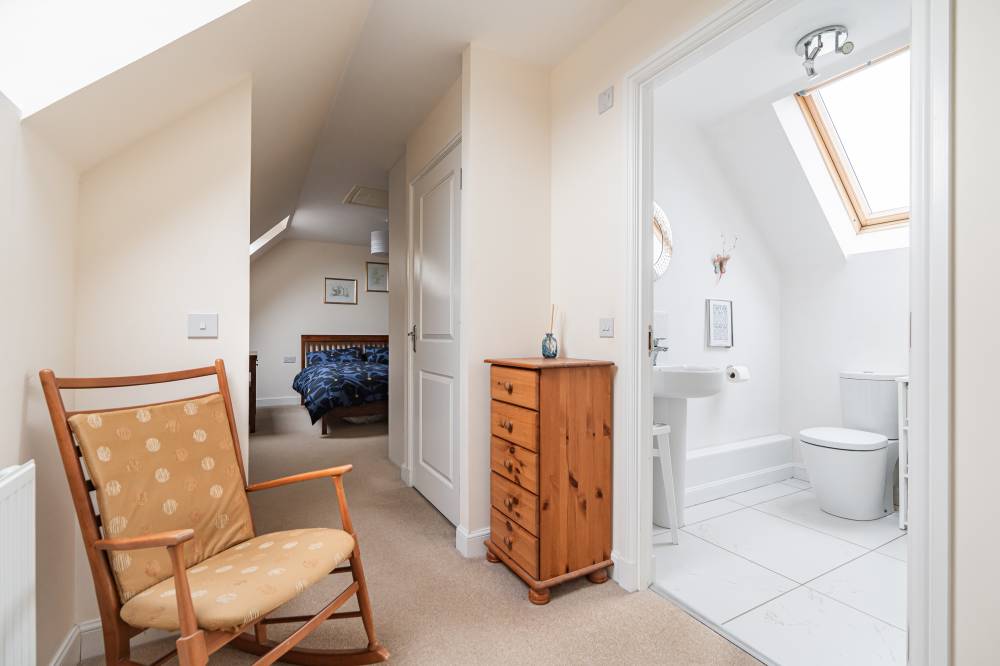 Carpeted stairs take you to the first floor where you will find three double bedrooms – two of which have fitted shutters, a single bedroom which would make an ideal home office or study, and a bathroom with a white suite and shower over the bath. A real feature of this home is the principal suite on the second floor which has built in wardrobes, a dressing area and an en-suite shower room with double size cubicle and storage cupboard. The property also benefits from gas central heating, double glazing and solar panels.