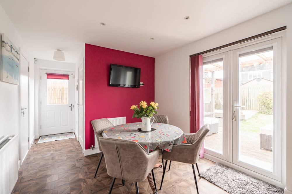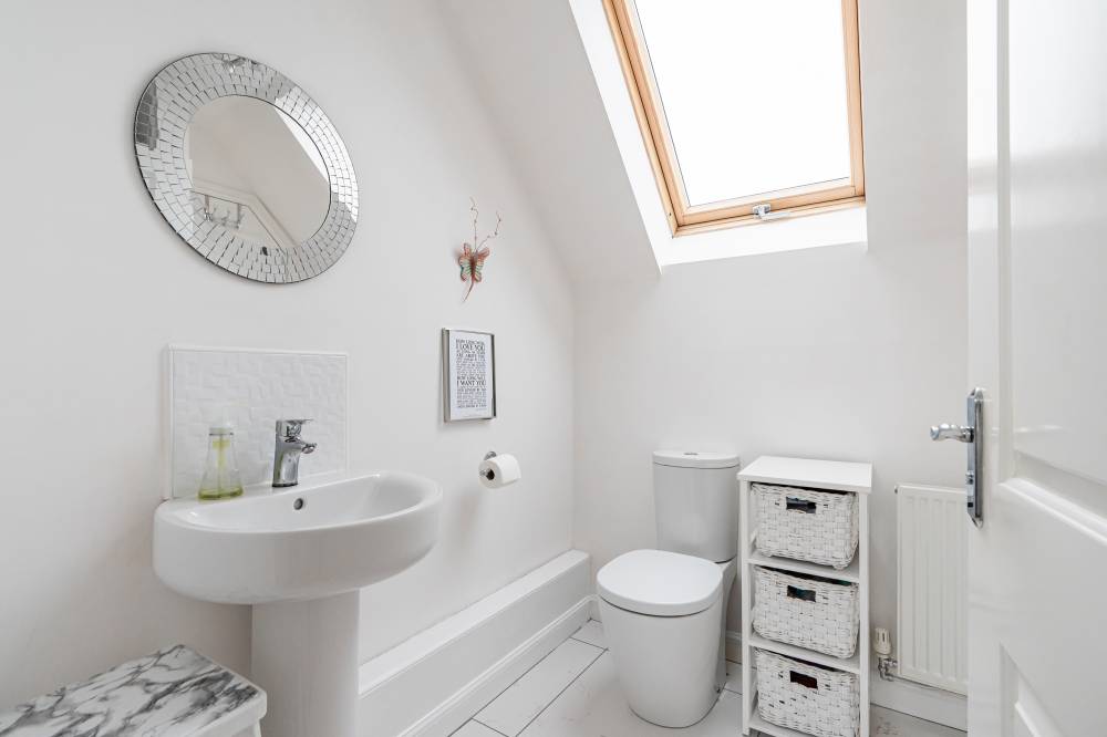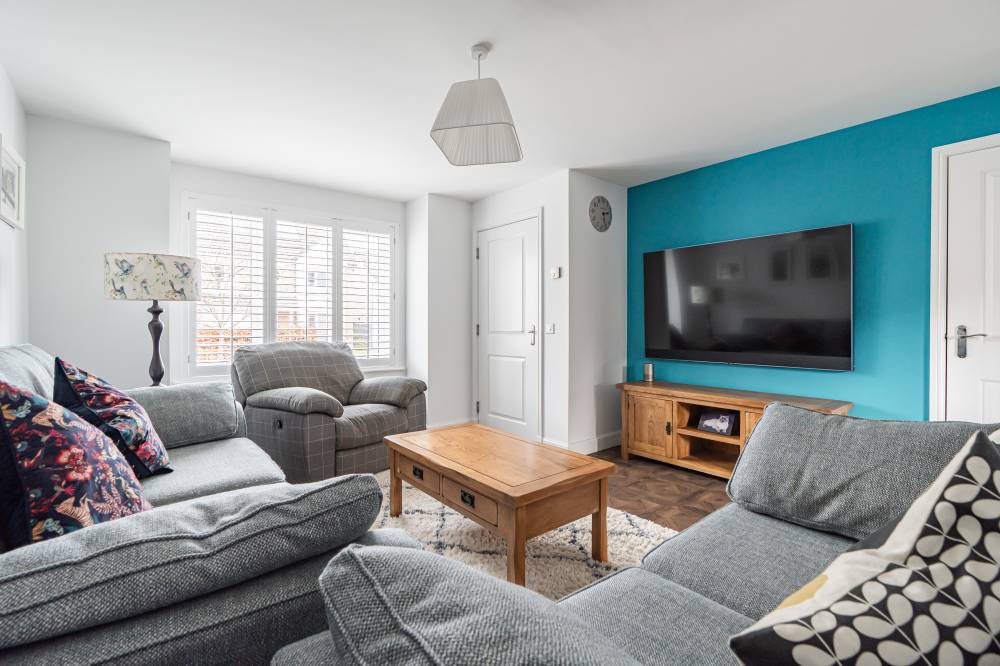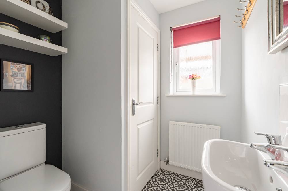 In true move in condition throughout, you enter and to your right is the bright and airy lounge with understairs storage and fitted shutters. To the rear is a modern dining kitchen with a range of wall and base units with co-ordinated worktops, tiled splashbacks, and doors to the side and rear garden, and completing the accommodation on this level is a handy WC with a cupboard plumbed for a washing machine.