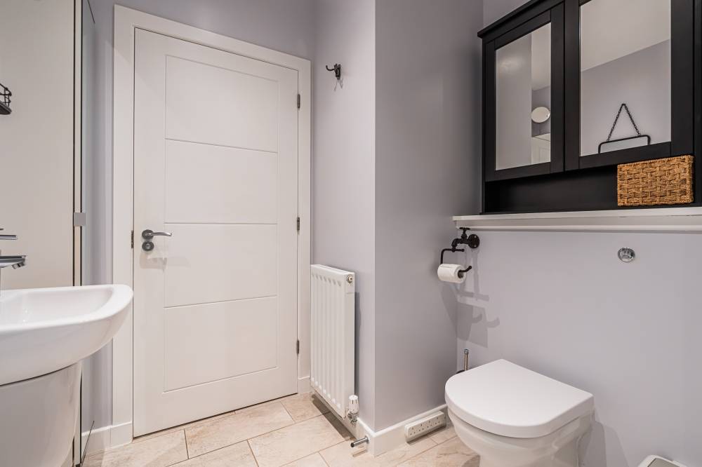 Moving upstairs there is a landing with storage cupboards, two double bedrooms with built in wardrobes, a single bedroom also with a built in wardrobe, and a stylish bathroom with a white suite and shower over the bath. The property also benefits from gas central heating and double glazing.