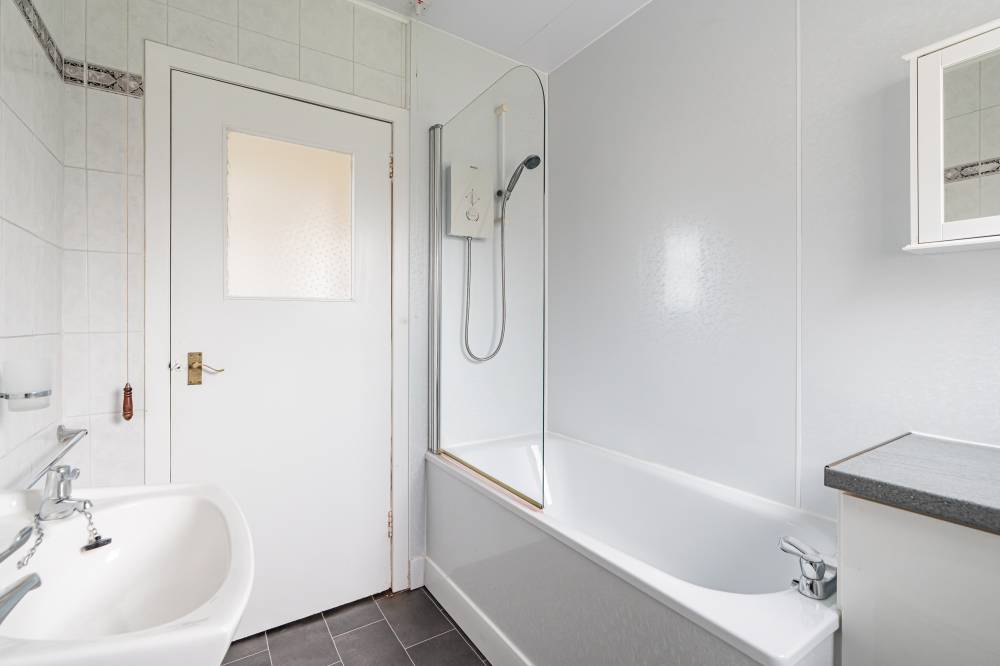 The property shall undoubtedly appeal to the first time buyer, rental investor or those considering downsizing and merits internal viewing to be fully appreciated. Access into the communal stairwell is via a secure entryphone system, with Flat 4 comprising of a good sized lounge with front facing aspect, featuring a central fireplace with cupboard housing the water tank. The modern kitchen is located off the lounge, with window overlooking the communal rear garden and fitted with a built-in cupboard. There is an ample range of wall and base units with worktops incorporating the built-in gas hob, electric oven and hood. An inner hall with window to side leads to the front-facing double bedroom with fitted wardrobes together with the bathroom comprising of a white three piece suite with electric shower over bath. Further benefits include gas central heating, double glazing together with two private store cupboards located on the first floor landing.