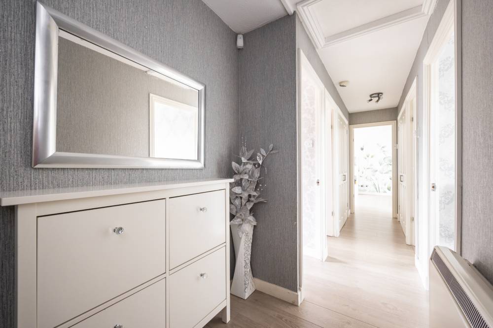 The accommodation which is presented to the market in move in condition comprises; secure entry system, welcoming entrance hallway with useful storage cupboard, light and airy dual aspect reception/dining room, fitted kitchen with a range of base and wall mounted units and integrated appliances, well proportioned principal bedroom with mirrored fitted wardrobes, two further good sized bedrooms and bathroom with three-piece suite and shower over bath. Further benefits include electric heating and double glazing.