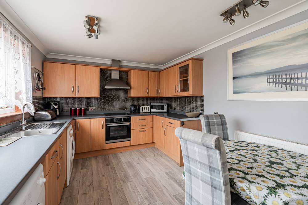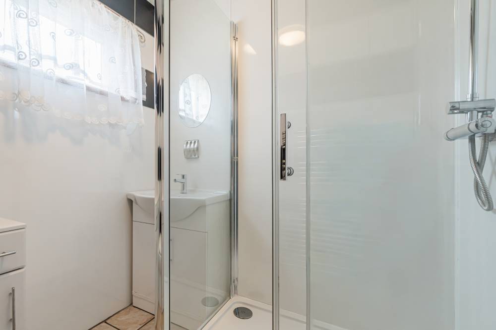 The light-filled accommodation is enhanced with a pleasant sunny open outlook to the front and provides a well proportioned home, ideally suited to the first-time buyer, professionals, couples or small families. Entered via a welcoming hallway with carpeted staircase leading to the upper landing with doors leading to the reception room and dining kitchen. The reception room is front-facing with a lovely open sunny aspect and features a wall-mounted fireplace incorporating the electric fire. The sizeable dining kitchen with built-in storage, is located to the rear with door providing direct access to the garden. Fitted with a range of modern wall and base units with complementary worktops incorporating the built-in electric hob/oven and hood with further appliances included in the sale. Upstairs leads to the two sizeable double bedrooms, both enhanced with open views and fitted with built-in storage. Lastly the modern shower room comprises of a white three piece suite with wash hand basin and WC set within a vanity unit together with a shower enclosure housing the mains shower. Further benefits include gas central heating with combi boiler and double glazing.