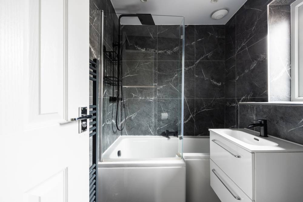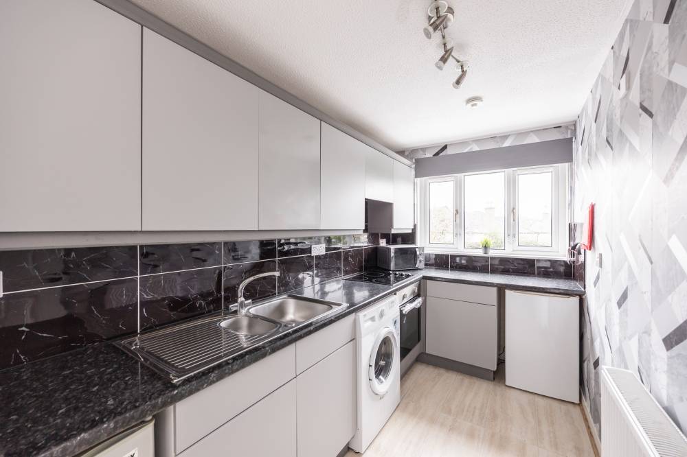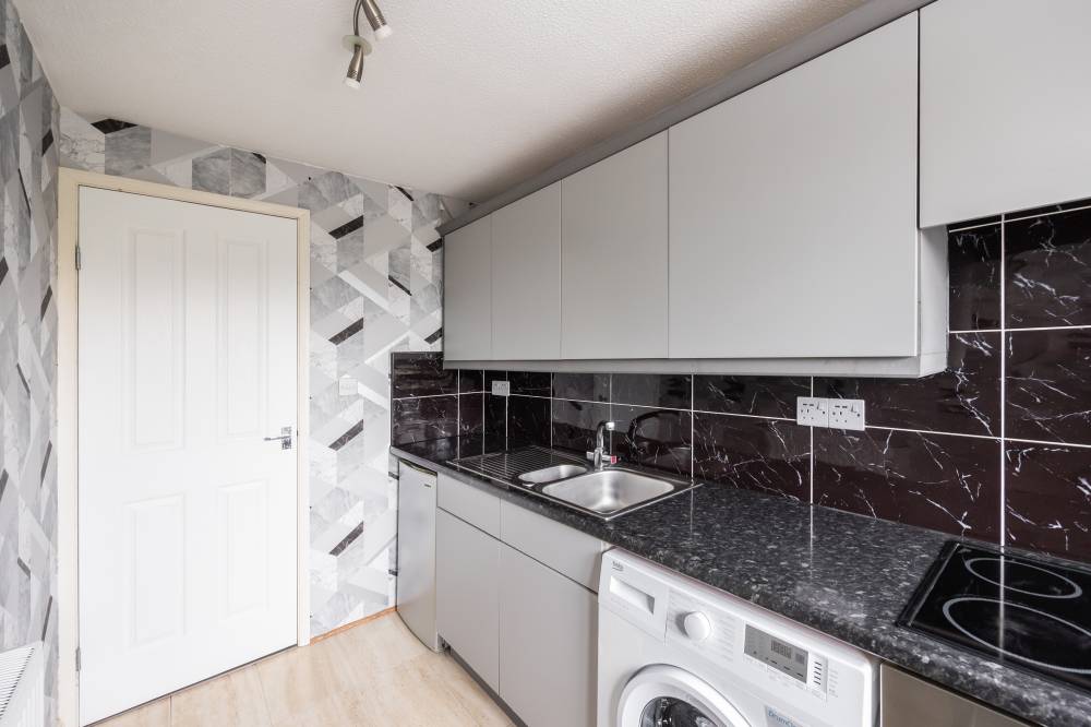 The accommodation is accessed via an entry staircase leading to the front-facing lounge/diner which enjoys a bright and airy atmosphere with ample space for both lounge and dining furniture. The kitchen is well laid out and fitted with a range of integrated and freestanding white goods, complemented by partial tiling and both under-unit and over-cabinet lighting, creating a practical yet inviting workspace. The double bedroom is quietly located to the rear and features a large integrated double wardrobe with sliding mirrored doors, providing excellent storage. A central hallway offers further storage with a shelved cupboard and a large additional cupboard housing the boiler along with extra space for household items. The bathroom is finished with full wall panelling and includes a shower over the bath with rainfall head, a stylish vanity unit, and a heated towel rail.