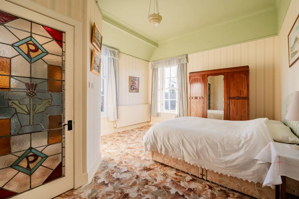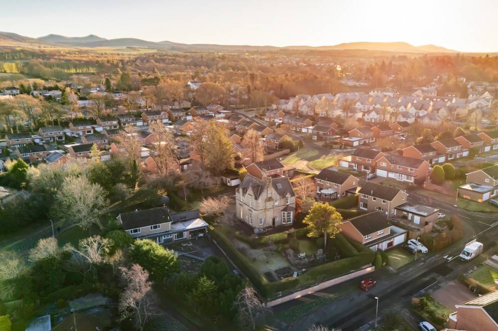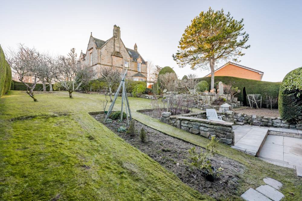 This unique home boasts breathtaking panoramic views towards Edinburgh Castle, Fife and the Pentland Hills and rests on a generous plot spanning approximately half an acre, incorporating verdant meticulously kept gardens, an extensive private driveway and double garage.