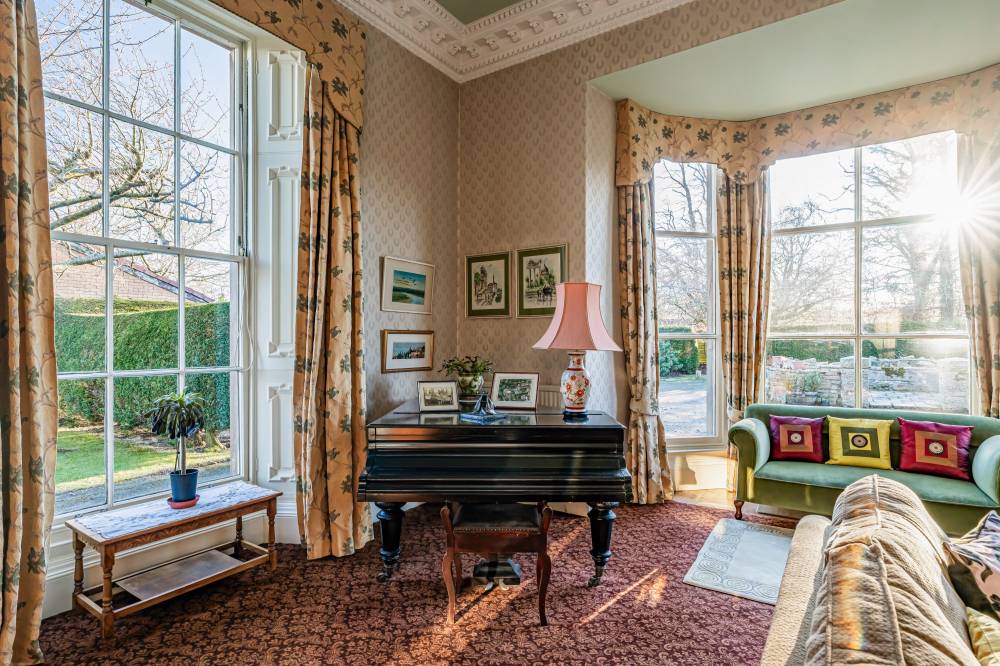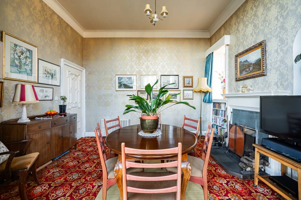 The accommodation is accessed via an entrance vestibule and the ground floor briefly comprises: entrance hallway which is flooded with natural light and features a grand staircase with wrought iron balustrade leading to the upper level complete with high ceiling and large southwest facing window, generously proportioned bay fronted reception room with near floor-to-ceiling windows, intricate cornice work/frieze, beautiful original mouldings on the doors and a bright dual facing aspect, versatile dining/family room which features a focal solid fuel fire and exudes a lovely peaceful feel with pleasant leafy views over the garden via a large bay window, well equipped breakfasting kitchen which has been fitted with a variety of base and wall mounted units, with coordinated worktops, splash tiling and an assortment of built-in appliances, butler’s walk-in pantry and utility room off, and convenient downstairs cloakroom.
