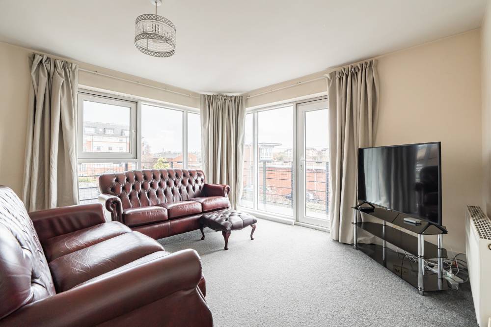 A welcoming entrance hallway sets the tone, complemented by useful built-in storage. The bright and spacious lounge diner enjoys a wonderful dual-aspect outlook and provides ample room for both relaxation and entertaining. Double doors lead into the fully fitted kitchen, complete with a range of integrated appliances, partially tiled splash areas, and space for a breakfast table. From the lounge, sliding doors open onto a fantastic private wrap-around balcony – an ideal spot for morning coffee or evening downtime. The principal double bedroom is generously proportioned, featuring large windows, an integrated double wardrobe, and plenty of room for additional freestanding furniture. Its en-suite shower room offers a double cubicle, partial panelling, and a wall-to-wall mirror. The second double bedroom is equally impressive, benefiting from a rear aspect, double Juliet balcony, and its own integrated wardrobe. The bathroom completes the accommodation, finished with partial tiling, and shower over bath.