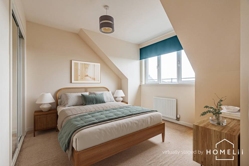 Some of the images have been virtually staged to illustrate potential furnishing options and provide a sense of scale. The property is currently unfurnished, and original photographs of the empty rooms are also included for reference.