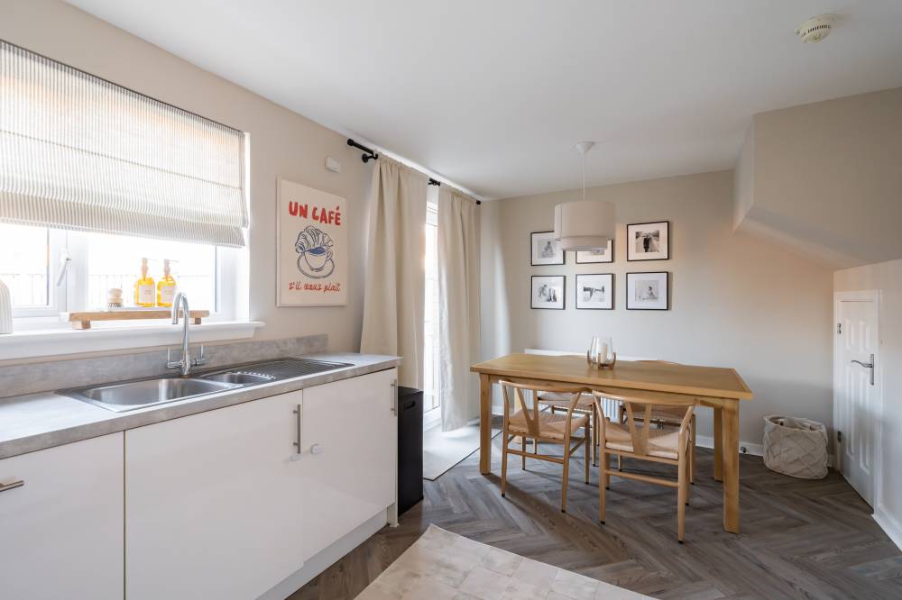 Externally, the property benefits from residents’ parking bays and a fully enclosed rear garden, which includes a patio area, lawn, and decked seating space, perfect for outdoor dining and entertaining