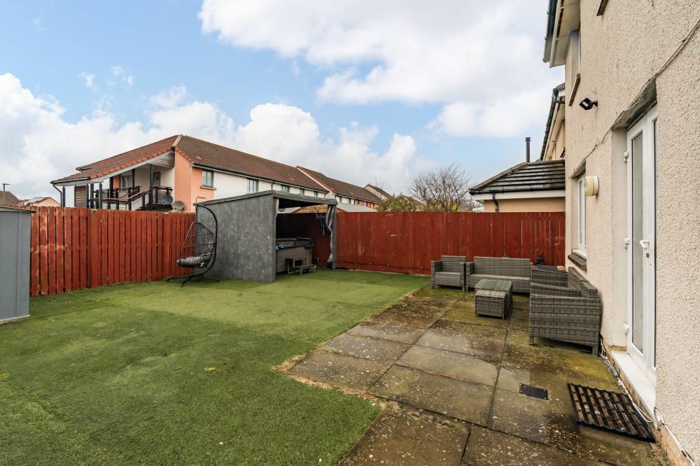 Externally, the property enjoys a low-maintenance rear garden laid with a combination of astroturf and slabbed areas. A sheltered hot tub area with power supply provides a fantastic space for year-round use, alongside a shed, sheltered side storage, and gated side access. To the front, a large monoblocked driveway offers off-street parking for approximately three vehicles.