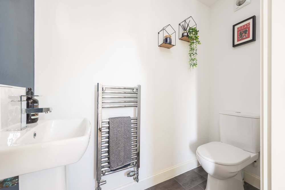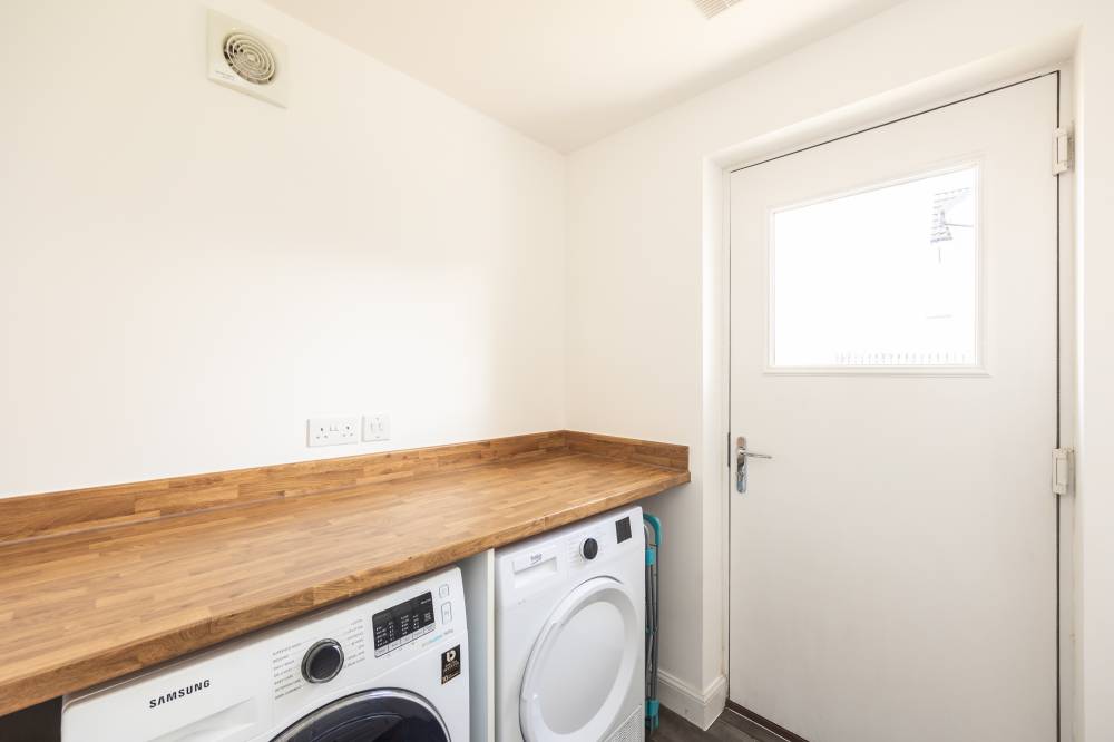 Offered to the market in true move-in condition, this delightful family home shall undoubtedly appeal to a wide variety of buyers seeking a high standard of living in an enviable location and merits internal viewing to be fully appreciated. The stylish, light-filled accommodation comprises; entrance hallway with carpeted staircase leading to the upper floor. There is a well presented dual aspect reception room, which in turn leads to the stylish dining kitchen with French doors providing direct access to the private rear garden. The integrated kitchen is fitted with a range of sleek wall and base units, complementary worktops incorporating the built-in gas hob, electric oven and hood with integrated fridge freezer and dishwasher. In addition there is a handy utility room with plumbing for washing machine and tumble drier and further access to the garden. Located off the utility room is a modern two piece WC apartment. Upstairs leads to the four good sized bedrooms with the larger two benefiting from built-in wardrobes and the principal bedroom featuring a stylish en-suite shower room. The family bathroom comprises of a white three piece suite with mains shower over bath. Further benefits include gas central heating and double glazing.